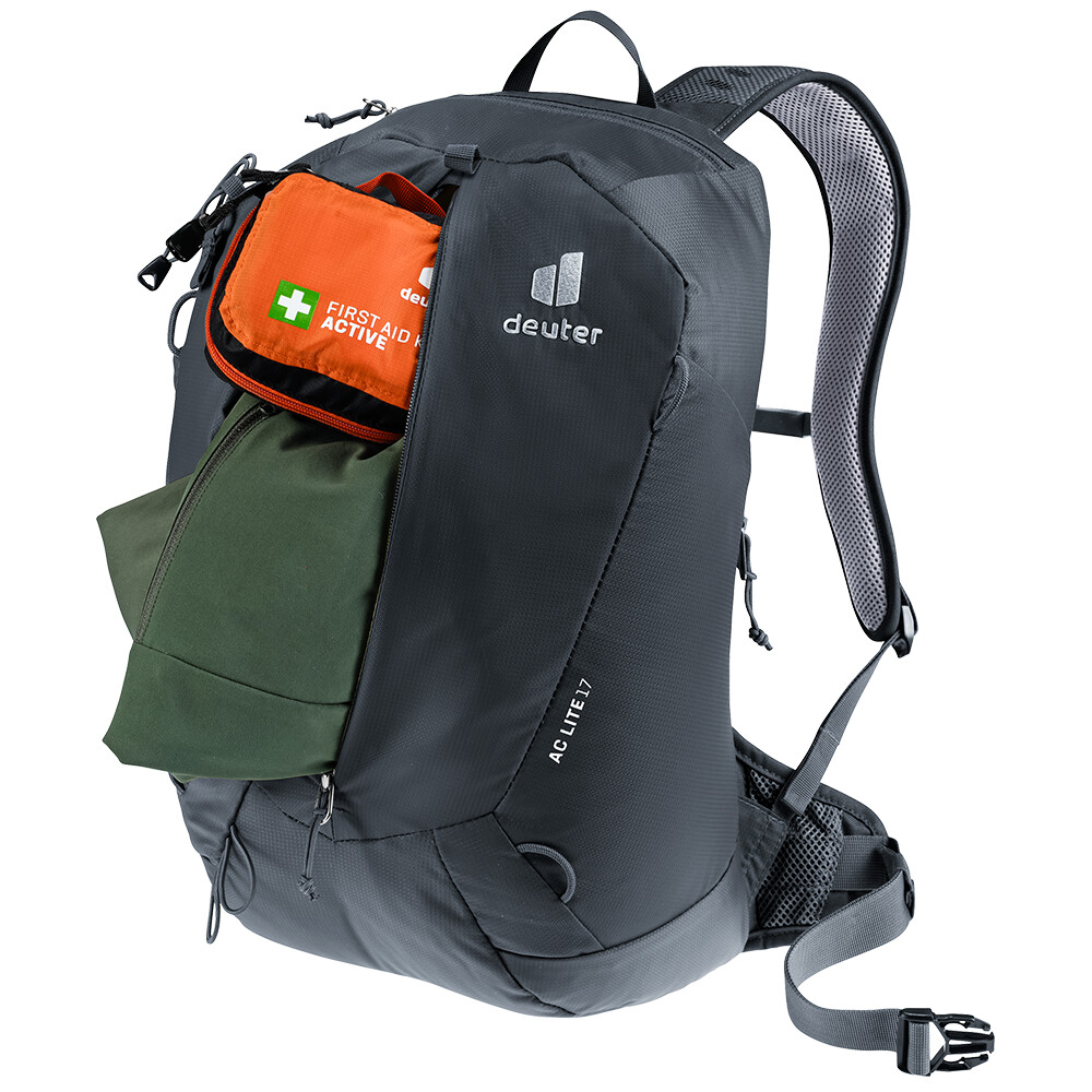 V prostorné hlavní komoře batohu AC Lite 17 snadno uložíte všechny potřebné věci. Kromě centrální kapsy má praktickou kapsu na mobil či jiné cennosti a elektroniku. Na bocích se nacházejí síťované kapsy na láhve s vodou, zatímco poutka umožňují připevnit helmu, trekové hole, nebo bundu. Na ramenním popruhu najdete praktické uchycení na brýle. Díky těmto promyšleným detailům je AC Lite 17 ideálním společníkem pro turistiku všeho druhu.