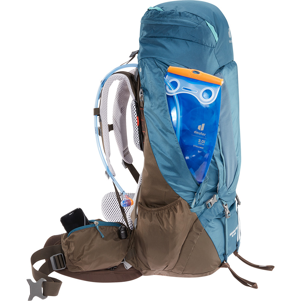 Dvoukomorová dámská krosna Aircontact PRO 65+15 značky deuter má nastavitelná záda a zrovna tak i ramenní popruhy. Díky velkému čelnímu vstupu můžete objem batohu zvětšit až o 15 litrů. Aircontact Pro vám pomůže rozložit váhu pomocí vyztuženého rámu do V, pohyblivým zavěšením ramen a výkyvným bederním pásem. To vše je podpořeno ergonomickým tvarováním a polstrováním. Spodní komora má svojí vlastní přepážku. Super bonus je malý denní batoh, který je součástí krosny v čelní kapse. Aircontact Pro má dvě kapsy na 3 litrový hydrovak a na pravé straně bederního pásu kapsu na lahev.