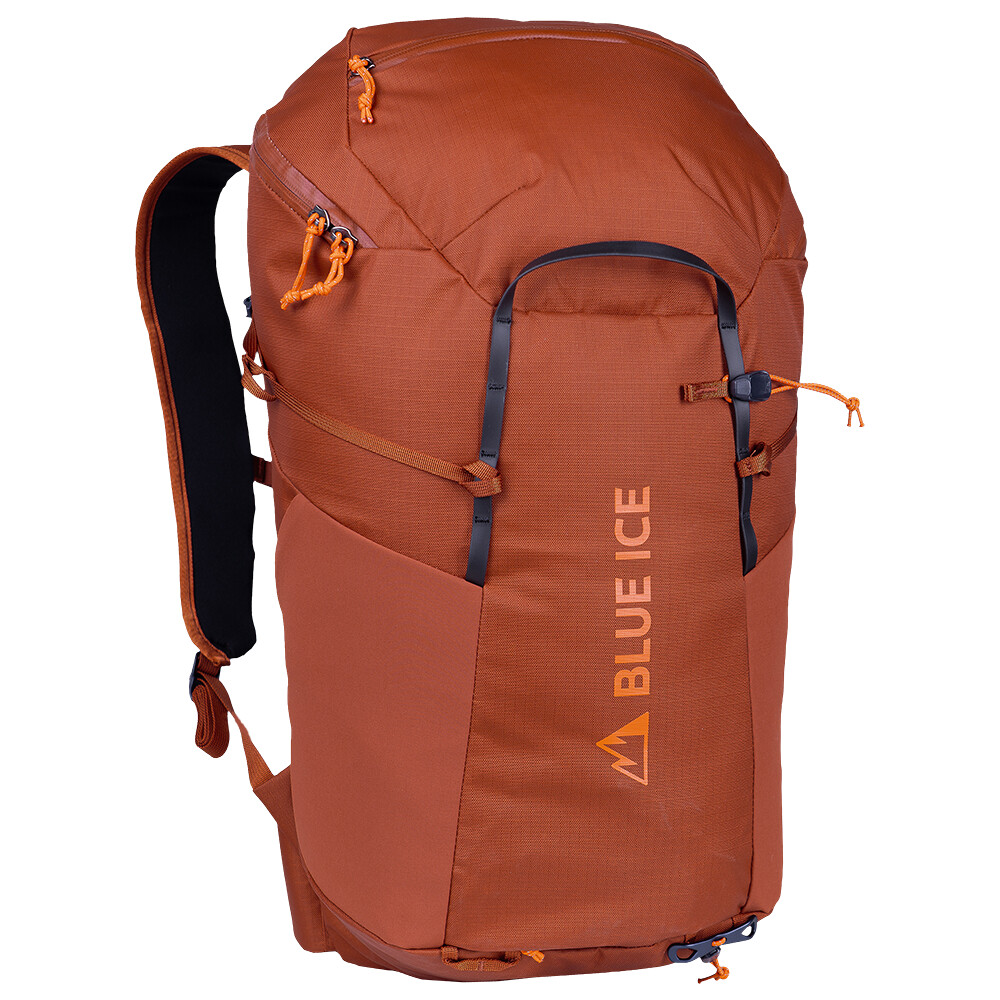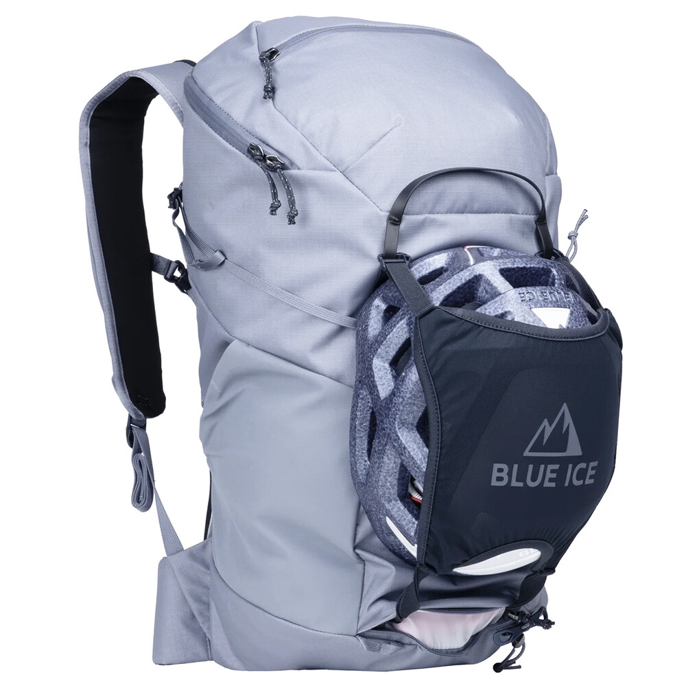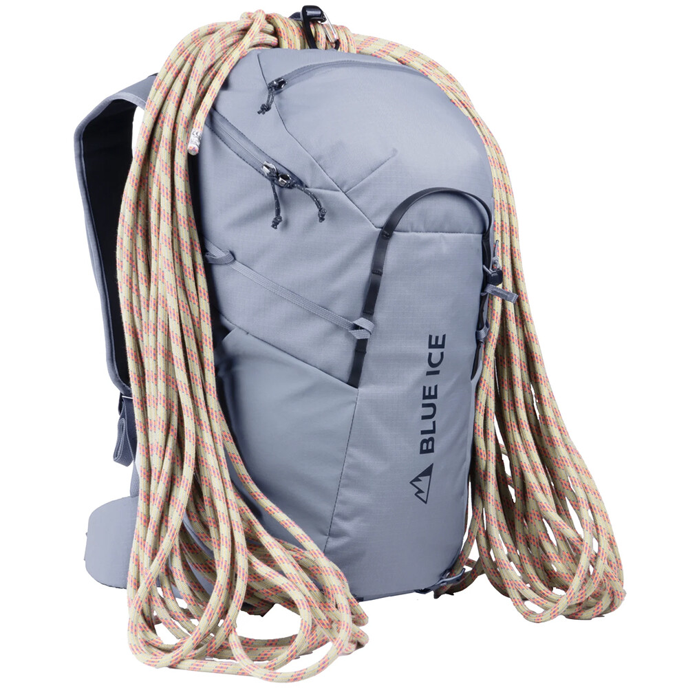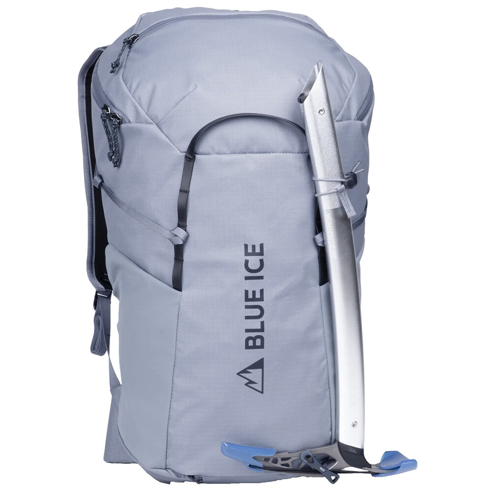 Lehký batoh značky Blue Ice vhodný zejména na skialpinismus a horolezectví. Dvojí možnost uchycení lyží, odnímatelné pouzdro na lavinovou bezpečnost. Vyrábí se ve 2 délkách zad. Polstrovaný bederní pás lze uschovat.