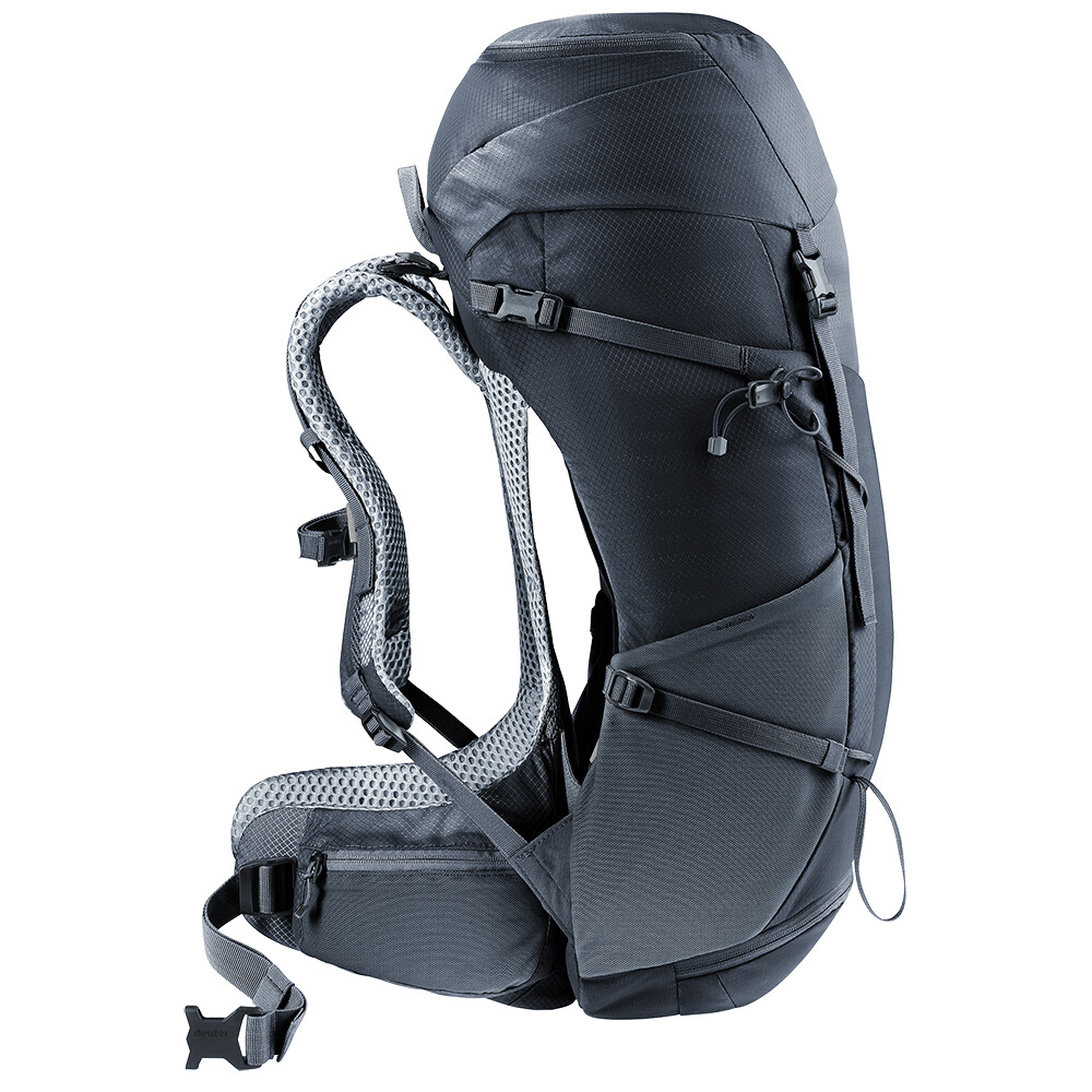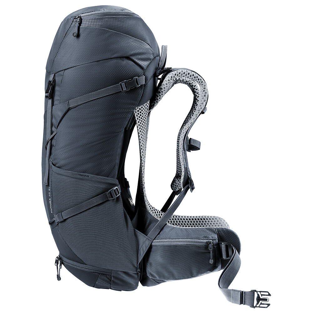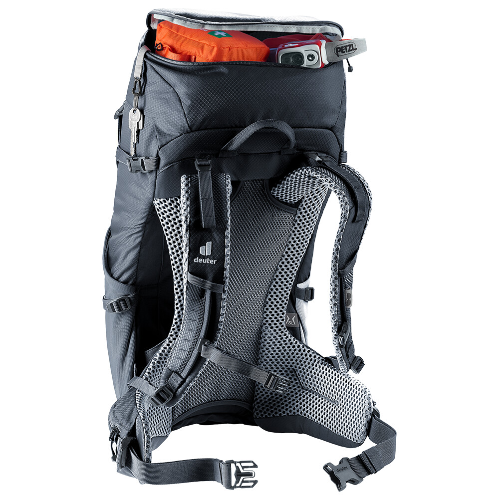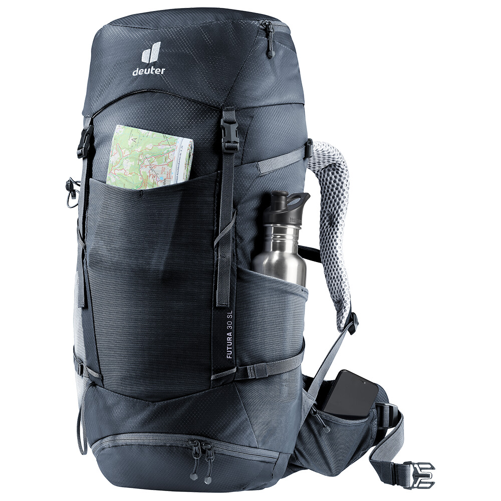 Turistický batoh Futura 30 SL od značky deuter vám bude skvělým společníkem na cestách za poznáním, ať už to budou výlety do hor nebo jen toulání po lese. Futura má zádový systém tvořený kovovou výztuhou se síťkou a polstrováním kolem páteře. Díky tomu vám zajistí maximální prodyšnost a optimální rozložení hmotnosti batohu mezi bedra a ramena. Protože je batoh určen na turistiku všeho druhu, nabízí možnost připevnění hůlek, cepínu, držáku na helmu a jeho součástí je také pláštěnka. Pro přehlednost ve sbaleném vybavení má batoh dvě samostatné komory. Horní plnění se zapínáním na přezky je doplněno dlouhým zipem ve tvaru U v přední části.