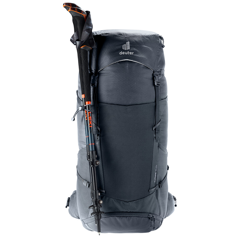 Turistický batoh Futura 34 EL od značky deuter vám bude skvělým společníkem na cestách za poznáním, ať už to budou výlety do hor nebo jen toulání po lese. Futura má zádový systém tvořený kovovou výztuhou se síťkou a polstrováním kolem páteře. Díky tomu vám zajistí maximální prodyšnost a optimální rozložení hmotnosti batohu mezi bedra a ramena. Protože je batoh určen na turistiku všeho druhu, nabízí možnost připevnění hůlek, cepínu, držáku na helmu a jeho součástí je také pláštěnka. Pro přehlednost ve sbaleném vybavení má batoh dvě samostatné komory. Horní plnění se zapínáním na přezky je doplněno dlouhým zipem ve tvaru U v přední části. Model s označením EL má prodlouženou délku zad a je vhodný pro postavy od 185 cm.