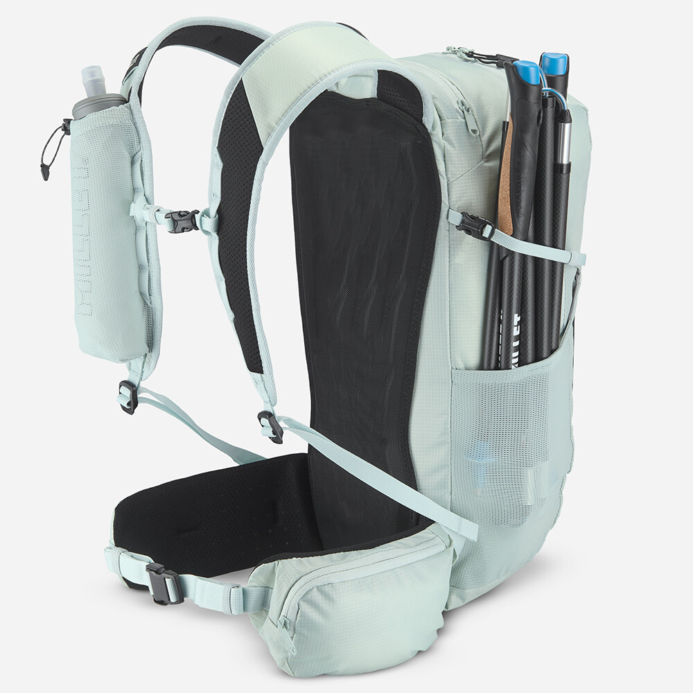 Batoh na turistiku od značky Millet vám bude perfektním společníkem při kratších výletech do přírody. Má jednu hlavní kapsu na zip, dvě boční síťované kapsy a větší kapsu v přední části se stahováním, kam se vám vejde záložní bunda nebo jiné vybavení. Výhodou je pružná kapsa na ramenním popruhu, kde můžete nést měkkou mačkací láhev a mít tak pití neustále po ruce. Tvarovaný zádový panel z EVA pěny je prodyšný a zajišťuje pohodlné nošení. Na batoh také můžete přidělat turistické hole.