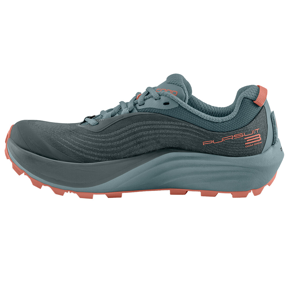 Dámská bota Pursuit 3 je ideální volbou pro terénní trailový běh. Jako všechny modely americké značky Topo Athletic disponuje širokou špičkou umožňující přirozený pohyb chodidla. I přes svoji větší šířku poskytuje výbornou fixaci nohy ve střední a patní části. Může za to především nahusto tkaný textilní svršek, který přispívá k pocitu bezpečí a zároveň vytváří vizuálně zajímavý vzhled.