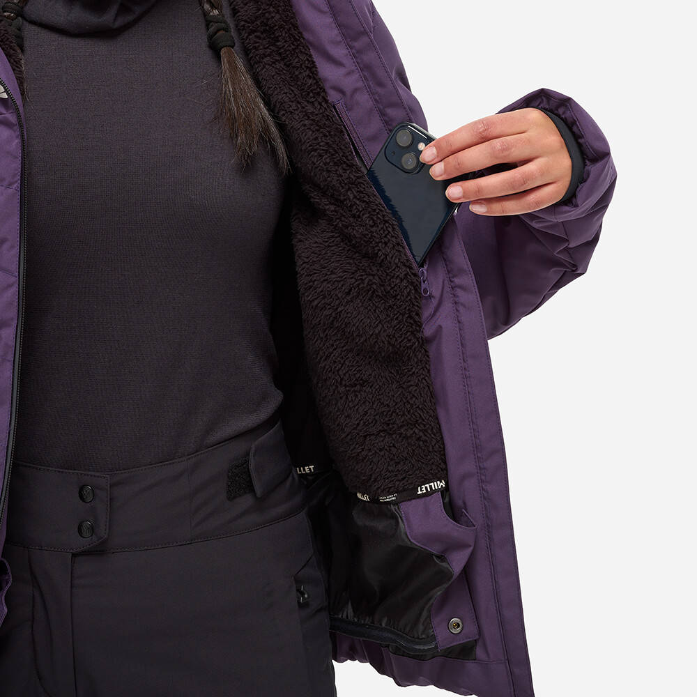 Kromě kapes na ruce má bunda vnitřní zipovou kapsičku na drobnosti a síťovanou kapsičku na uložení brýlí, doplněnou o ubrousek. Nemůže chybět kapsička na skipas, ta je ukryta levém předloktí. Další neodmyslitelnou součástí bundy je sněhový límec s protiskluzovým páskem. Rukávy jsou zakončeny velmi pohodlnou strečovou manžetou.