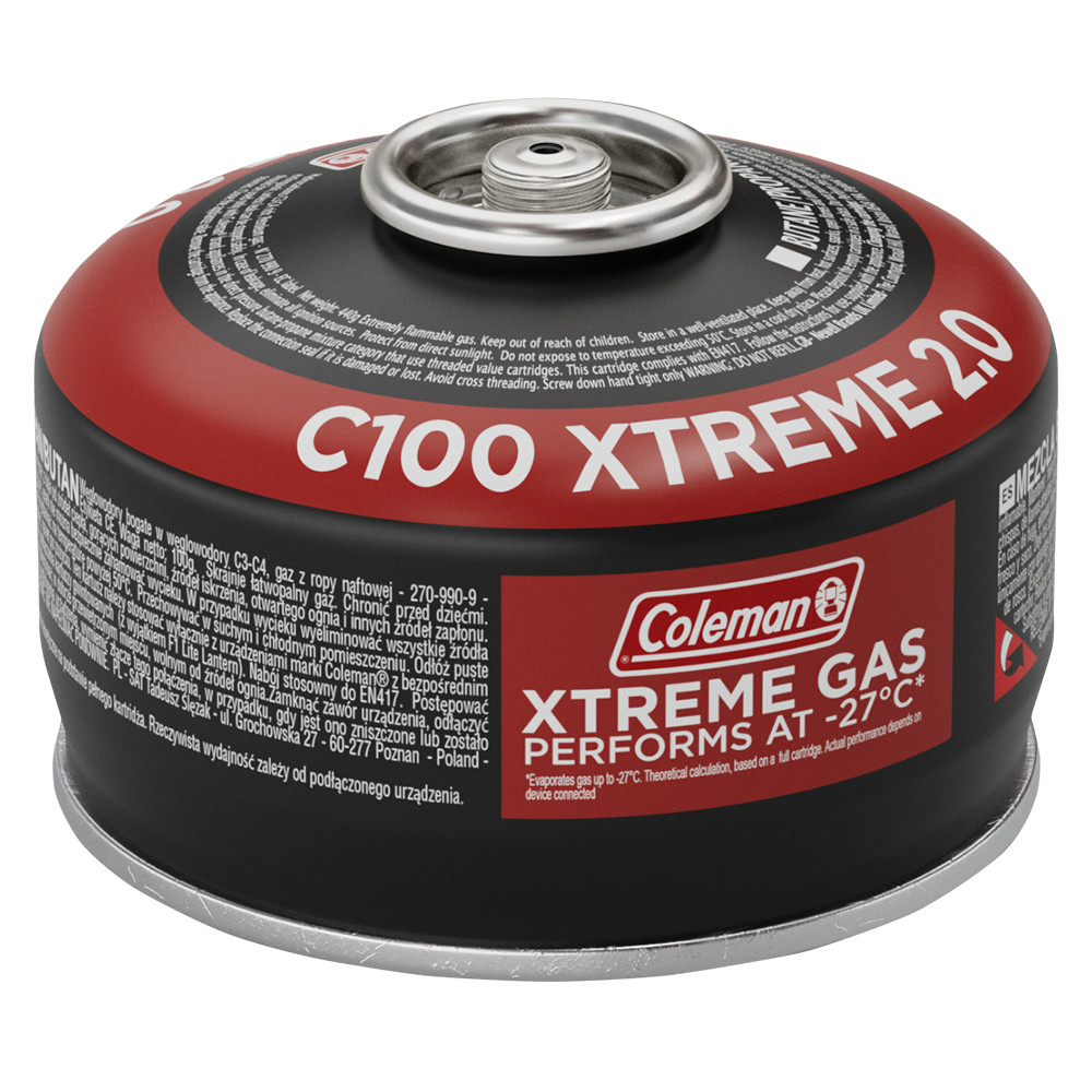 Plynová kartuše C100 Xtreme od firmy Coleman zaručuje skvělý výkon i při velmi nízkých teplotách. Kartuše s náplní Extreme (propan 40%, butan 60%) jsou ideální pro použití v zimě nebo vysokohorských podmínkách. Je to tenkostěnná nádoba s ventilem a závitem pro snadné připojování a odpojování spotřebičů. Nový formát přináší kromě vyššího obsahu plynu i kompaktní tvar vhodný pro sbalení do batohu.