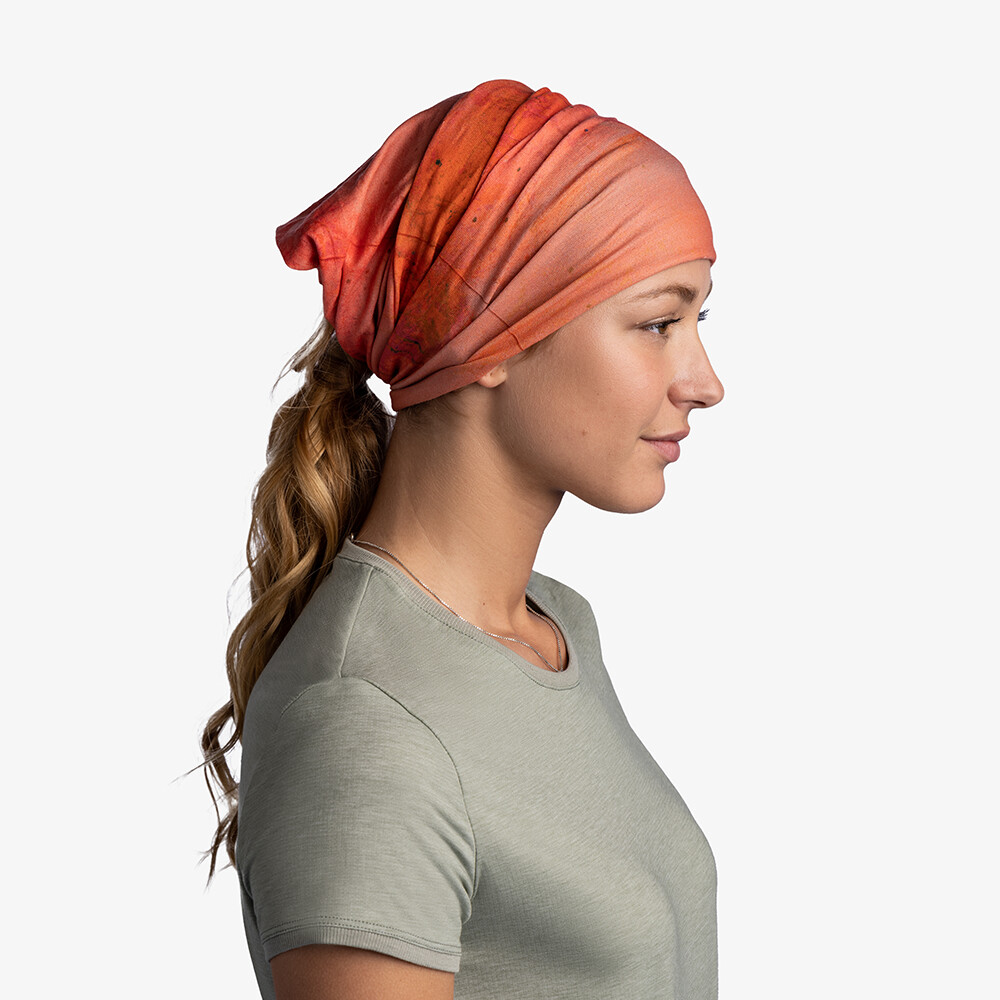 Lehký multifunkční šátek Coolnet UV od firmy Buff můžete nosit na několik způsobů. Odvádí vlhkost od těla, zabrání padání vlasů do tváře a ochrání před chladem i sluncem.