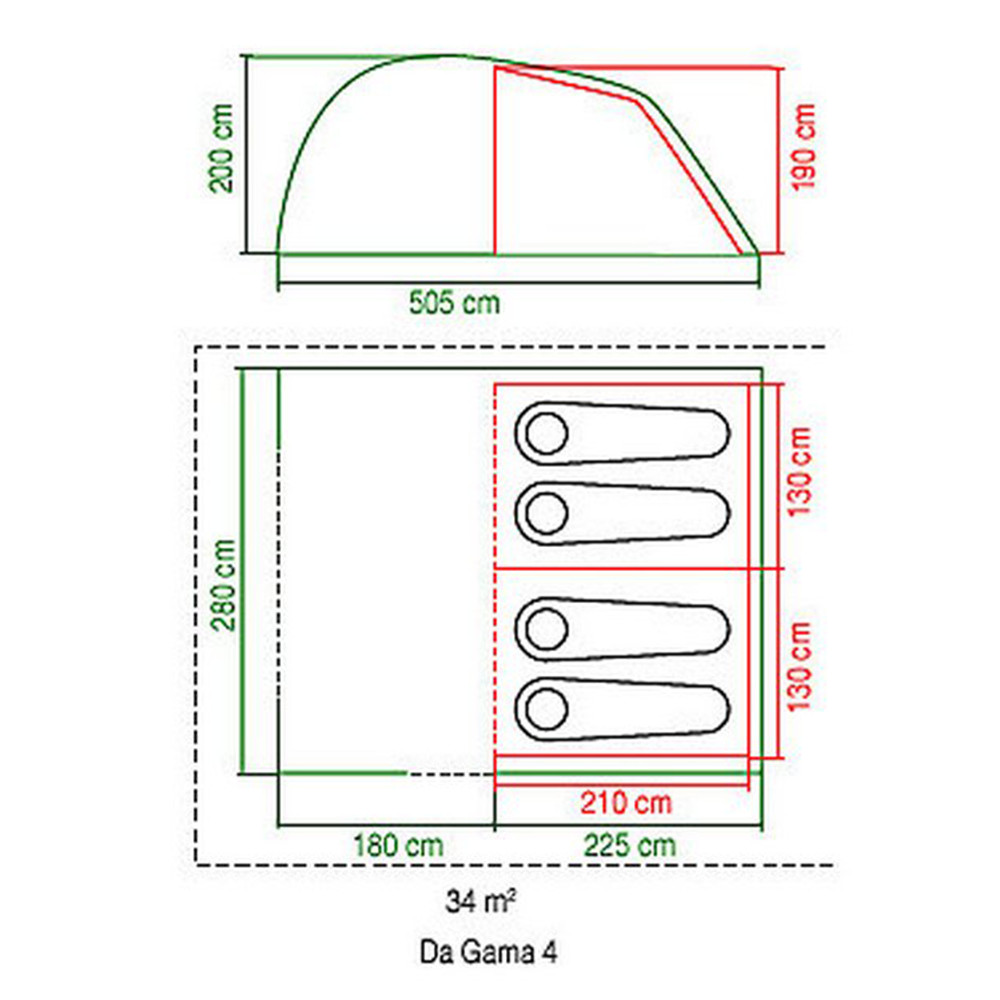 Stan pro čtyři osoby, který vyniká svojí jednoduchou a rychlou stavbou. Postavíte ho pomocí předem připevněných teleskopických tyčí. Široké dveře usnadňují manipulaci s matracemi a dalším vybavením.