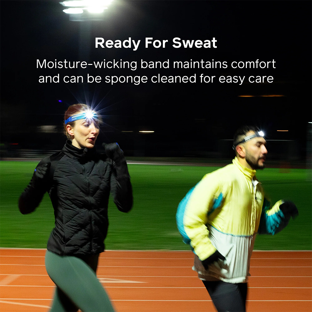 Běžecká čelovka od značky BioLite, o které nebudete vůbec vědět, že ji máte na hlavě. Váží pouhých 78g, je nabíjecí a baterie je umístěna v zadní části popruhu. Velkou výhodou je ultralehká přední část, která má tloušťku pouhých 9mm. Čelovka je perfektně vyvážená a dokonale sedí na hlavě. Při běhu neposkakuje a nesjíždí. Nabízí několik režimů svícení, světlo rozptýlené i kužel dálkového světla s dosvitem až na 90 m. Vše s možností nastavení intenzity. Zadní část je opatřena červenou blikačkou pro vaši větší bezpečnost.