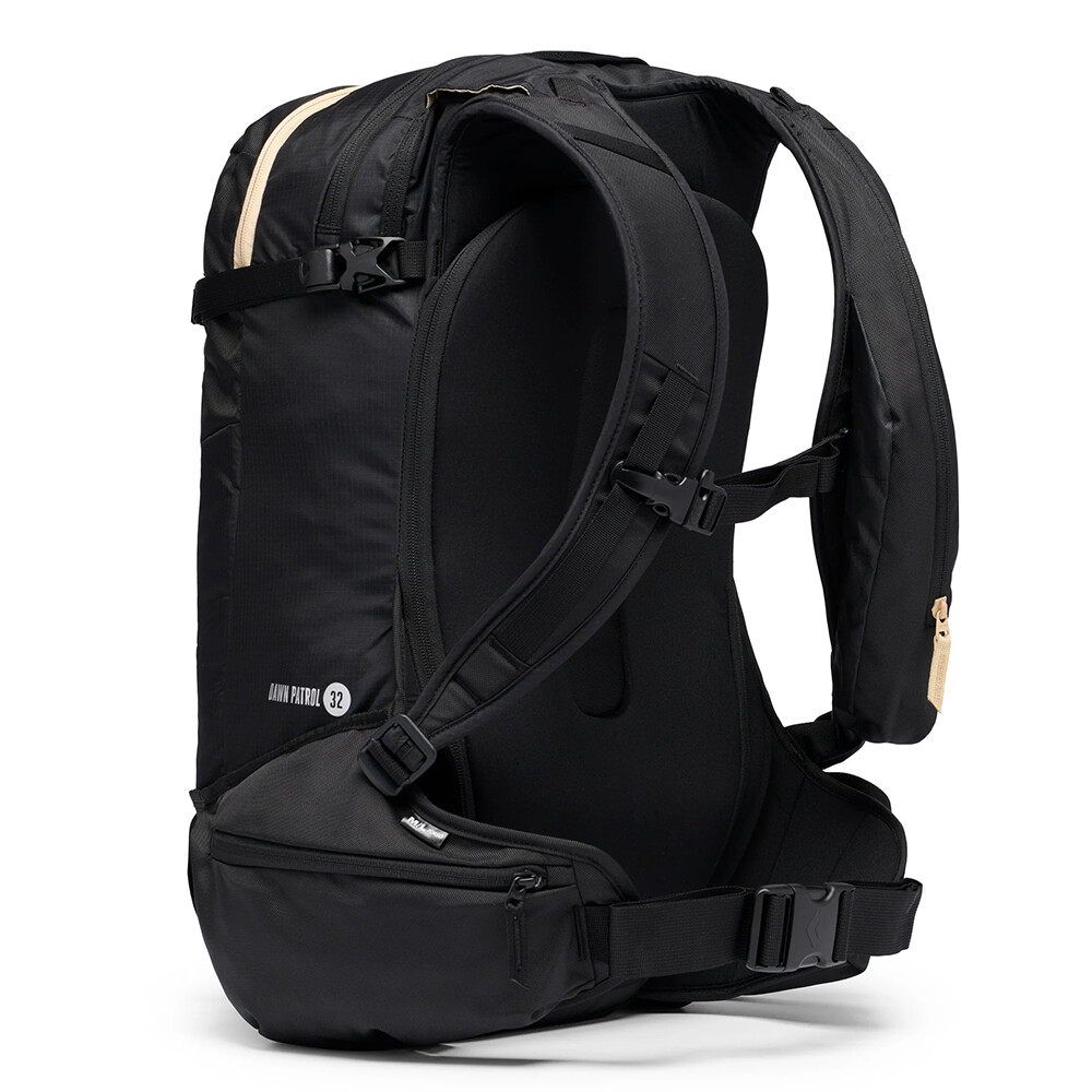 Skialpový batoh Dawn Patrol od značky Black Diamond je ideální pro zkušené skialpinisty a freeridery. Objem 32 L pojme vekšeré vybavení pro náročné túry nebo sjezdy, včetně náhradního oblečení nebo lana. Má oddělenou kapsu na lavinovou výbavu (sonda, lopata), hlavní kapsu s přístupem na zip ze zádové části a velké kapsy na bederním pásu pro uložení skialpových pásů při sjezdu. Zajímavostí je také kapsa na ramenním popruhu, která se hodí pro hadičku hydrovaku, mačkací láhev nebo vysílačku. Samozřejmostí jsou poutka pro uchycení lyží, snowboardu, helmy, cepínů a hůlek.