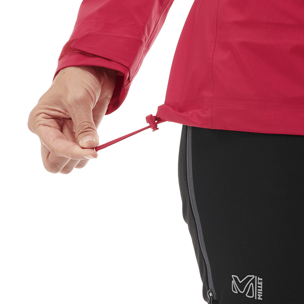 Dámská nepromokavá bunda z lehkého Gore-texu Active od firmy Millet. Odolný materiál zvládne zatížení v náročných horských podmínkách po celý rok. Ergonomický střih perfektně sedí na těle, ať v ní lezete, skialpujete nebo si užíváte treky. Bundě nechybí regulovatelná kapuce kompatibilní s helmou, kapsy snadno přístupné v lezeckém úvazku.