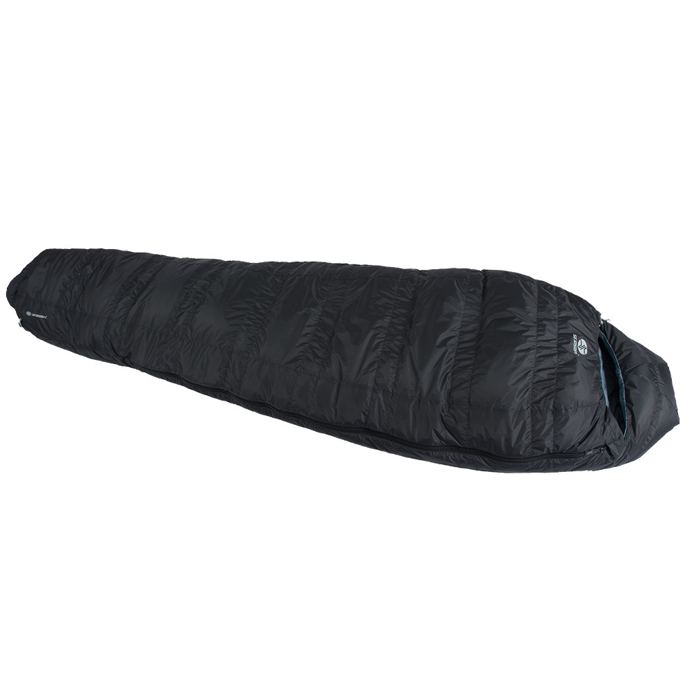 Péřový spacák pro zimní použití. Má dva větrací otvory, stahovací kapuci chránící celý obličej a vnější DWR úpravu. Navíc vrstva syntetické náplně v části pro chodidla, která je pomáhá udržet v teple.