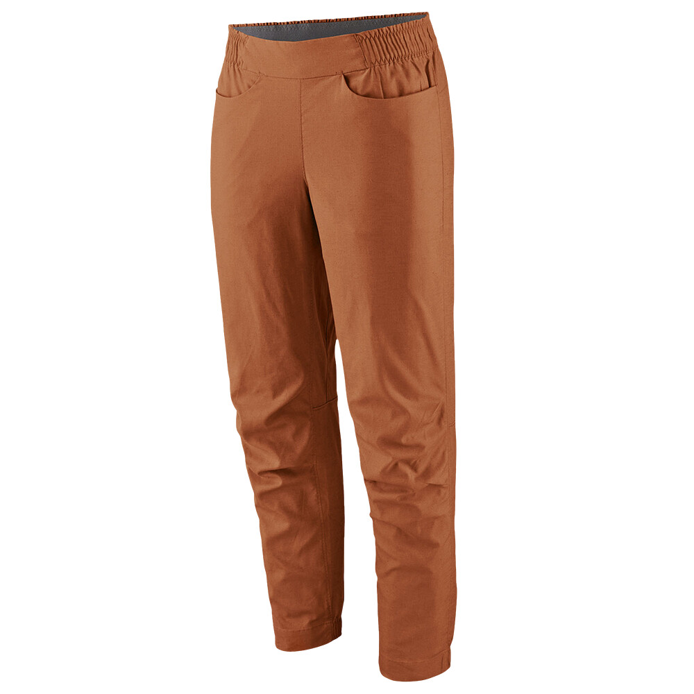 Dámské prodyšné lezecké kalhoty Hampi Rock Pants Women značky Patagonia jsou vyrobeny z konopí, recyklovaného polyesteru a spandexu. Jsou skvělým společníkem do letních veder, protože kombinace materiálů příjemně chladí a dýchá. Současně je tato tkanina rychleschnoucí a elastická. Odolává i oděru, proto se o ně nemusíte bát, až budete lézt po lištách. Měkký, vysoko strečový pas lze snadno dotáhnout plochou šňůrkou. Přední kapsy jsou nachystané na přítomnost sedáku.