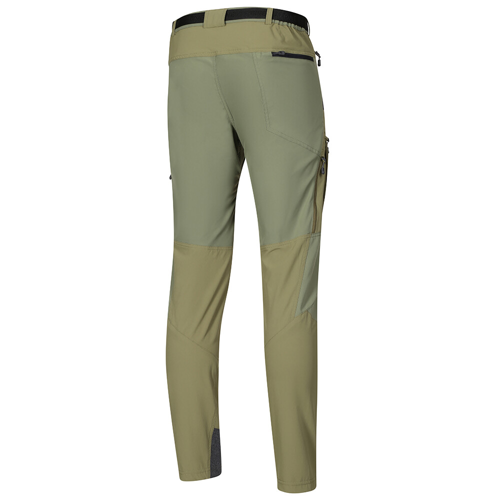 Kalhoty kombinují prodyšný pružný materiál se silnějším, pro zvýšení odolnost proti oděru v oblasti kolen a zadní části. Pohodlný, mírně pružný pas má integrovaný pásek. Nohavice mají z boku zipové odvětrávání. Vnitřní a spodní okraj nohavic je zesílen panelem z oděruvzdorné tkaniny. Kolena jsou předtvarovaná pro komfort při pohybu.