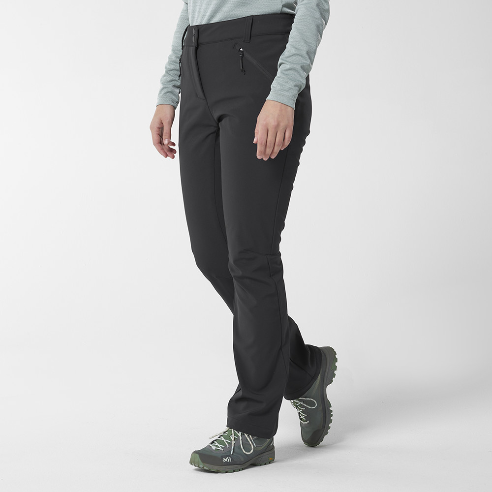 Dámské kalhoty Lapiaz od francouzské firmy Millet jsou vyrobeny z větruodolného softshellu s příjemným broušeným materiálem na vnitřní straně.