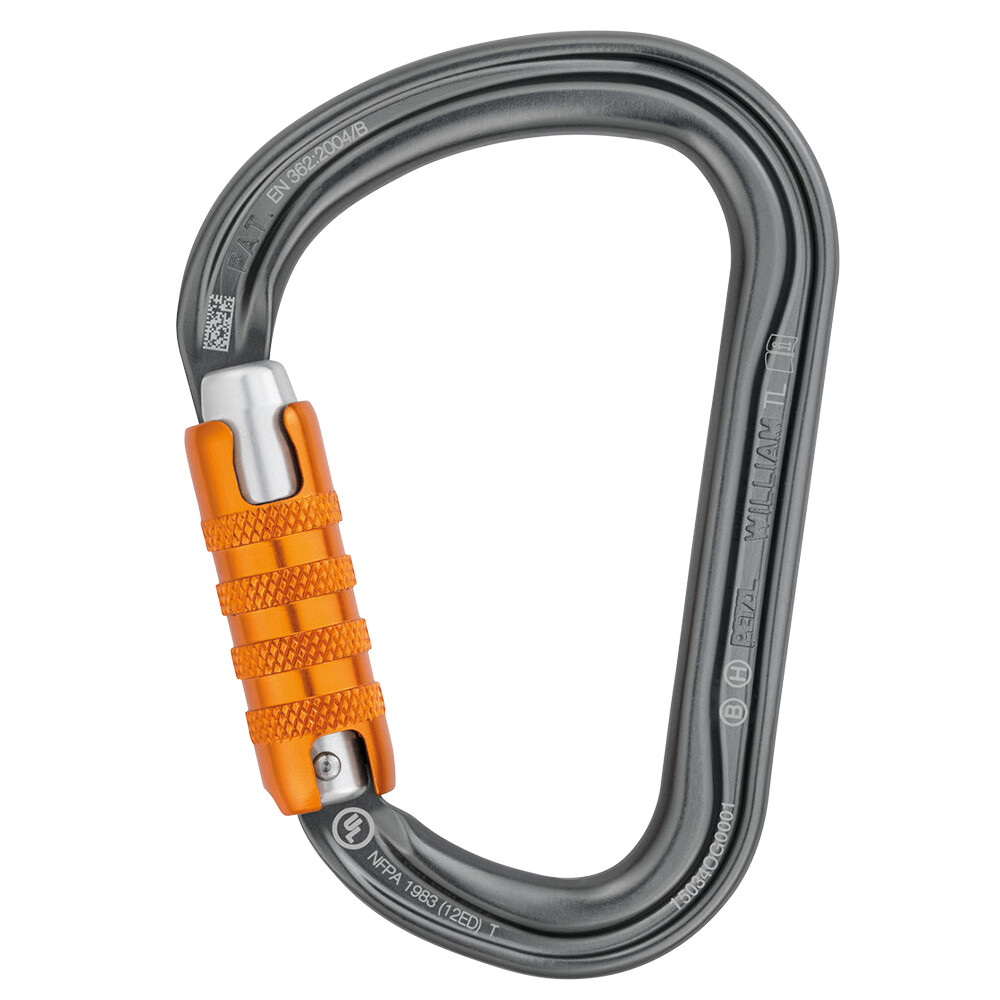 Petzl William Triact-Lock je HMS karabina s automatickou pojistkou zámku a lehce asymetrickou konstrukcí. Plynule designovaný tvar vnitřní části a systém zámku Keylock usnadňují manipulaci s karabinou. Karabinu WILLIAM lze použít s dělící příčkou CAPTIV, která udržuje karabinu ve správné poloze, zatíženou v hlavní podélné ose, což je vhodné pro použití se slaňovacím zařízením. Automatická pojistka s trojitým chodem, zvyšuje výrazně bezpečnost.