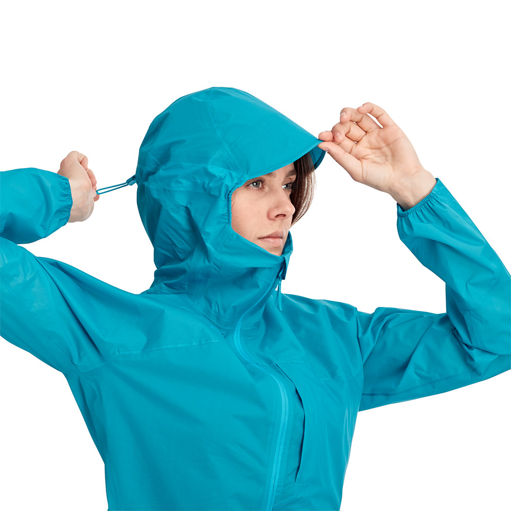 Dámská lehká nepromokavá bunda pro všechny sportovkyně. Nepromokavá a zároveň prodyšná membrána vás ochrání před deštěm a větrem. Elastické zakončení rukávů a spodního lemu udrží bundu na správném místě. Kapuci lze nastvit vertikálně i horizontálně pomocí jednoho tahu. Hrudní zipová kapsa pojme potřebné cennosti. Díky přídavnému obalu a nízké hmotnosti můžete mít bundu vždy při sobě. A zhoršení počasí vás už nepřekvapí.