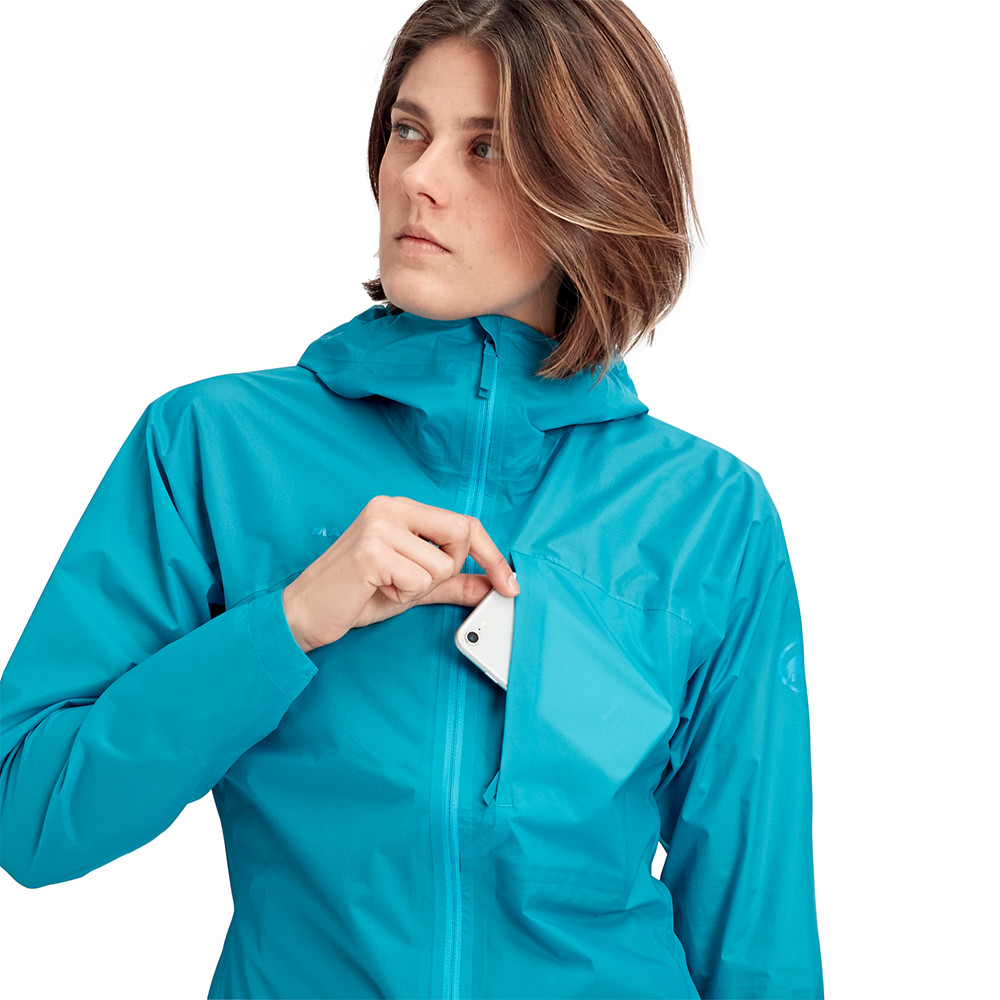 Dámská technická bunda od firmy Mammut vám poskytne perfektní ochranu při nepřízni počasí. Sportovní střih neomezí v pohybu. Bunda má nastavitelnou kapuci, dvě zipové kapsy, jednu vnitřní kapsu a nastvaitelné manžety rukávů. Zajisté oceníte i zipové ventilace.