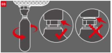 Pokud je kartuše zcela zašroubovaná do mechanismu nafukovacího systému airbagu a černý gumový těsnicí kroužek kartuše již není viditelný, kartuše je správně nainstalována v mechanismu inflačního systému. Váš airbag je tedy plně funkční a batoh je připraven k použití.