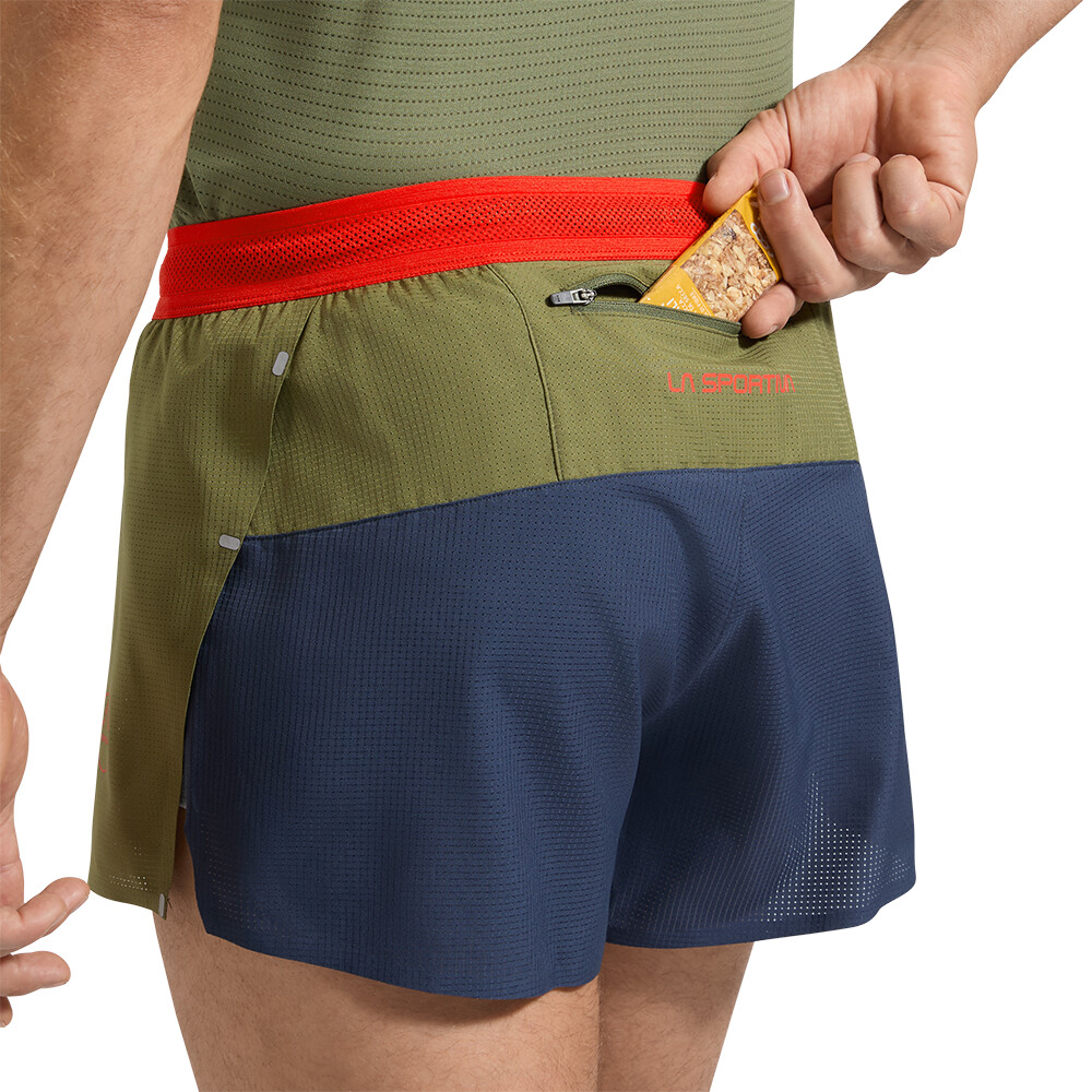 Pánské běžecké kraťasy od firmy La Sportiva jsou ideální volbou do teplého počasí. Lehký prodyšný materiál vám poskytne příjemné klima. Kraťasy mají nastavitelný pas, všité slipy, tři kapsy a drobné rozparky.
