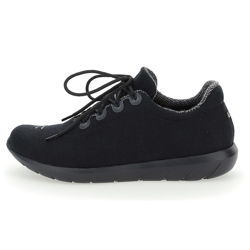 Díky textilnímu svršku s minimem švů, nabízí bota Living Cloud Black Sole úžasnou lehkost i pohodlí. Užití organického vlákna NATEX dodává obuvi bakteriostatický účinek a podporuje rychlost schnutí. Konstrukce Air Dual System zajišťuje účinné odvětrání a podešev Cell Combe pomáhá vytvořit dojem, jako byste chodili po oblacích.