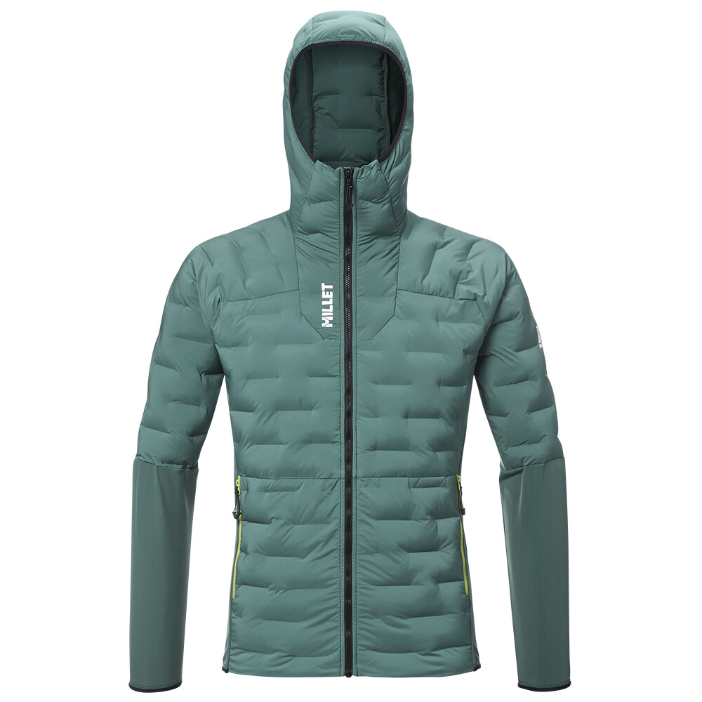Pánská bunda M White Hybrid Hoodie od značky Millet je částečně zateplená bunda na aktivní pohyb v zímních horách.