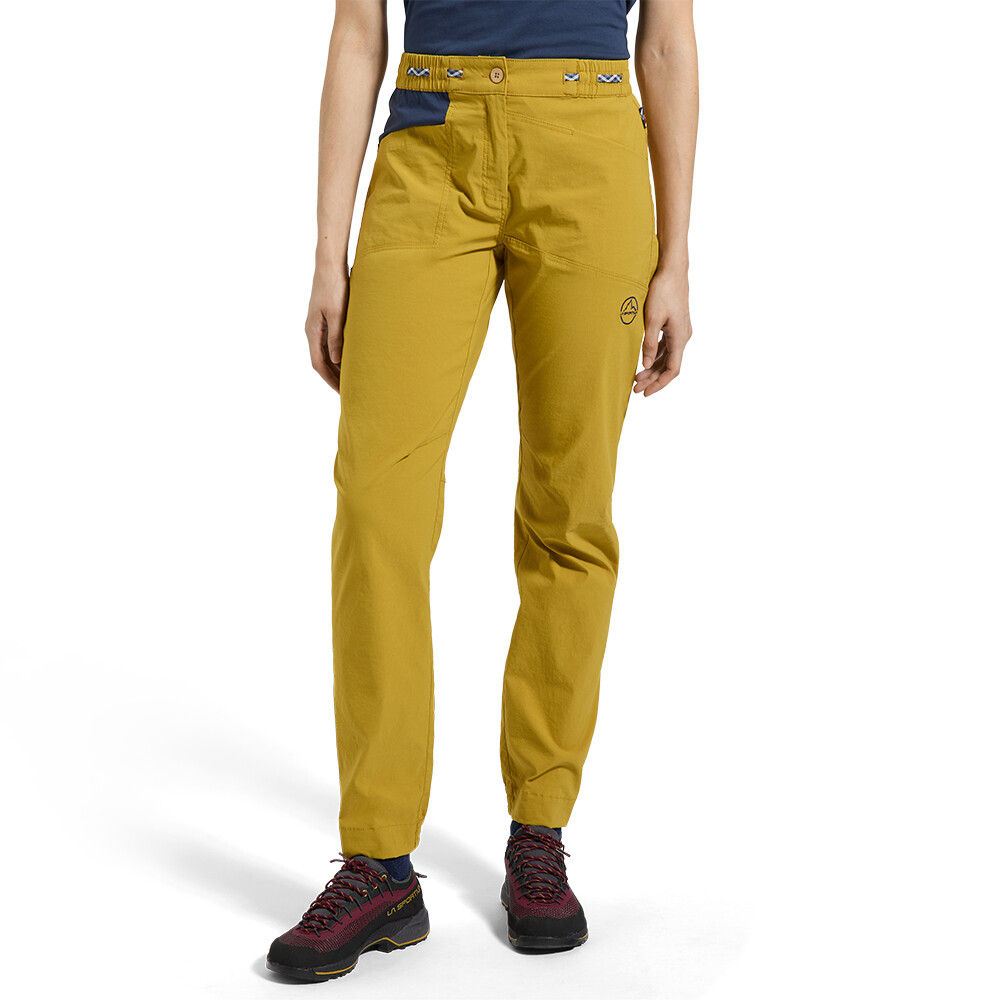 Dámské lezecké kalhoty od firmy La Sportiva jsou vyrobeny z vysoce odolného materiálu. Sportovní střih s předtvarovanými nohavicemi poskytne volnost pohybu. kalhoty mají dvě kapsy, minimalistický pas a 1 zipovou zadní kapsu.