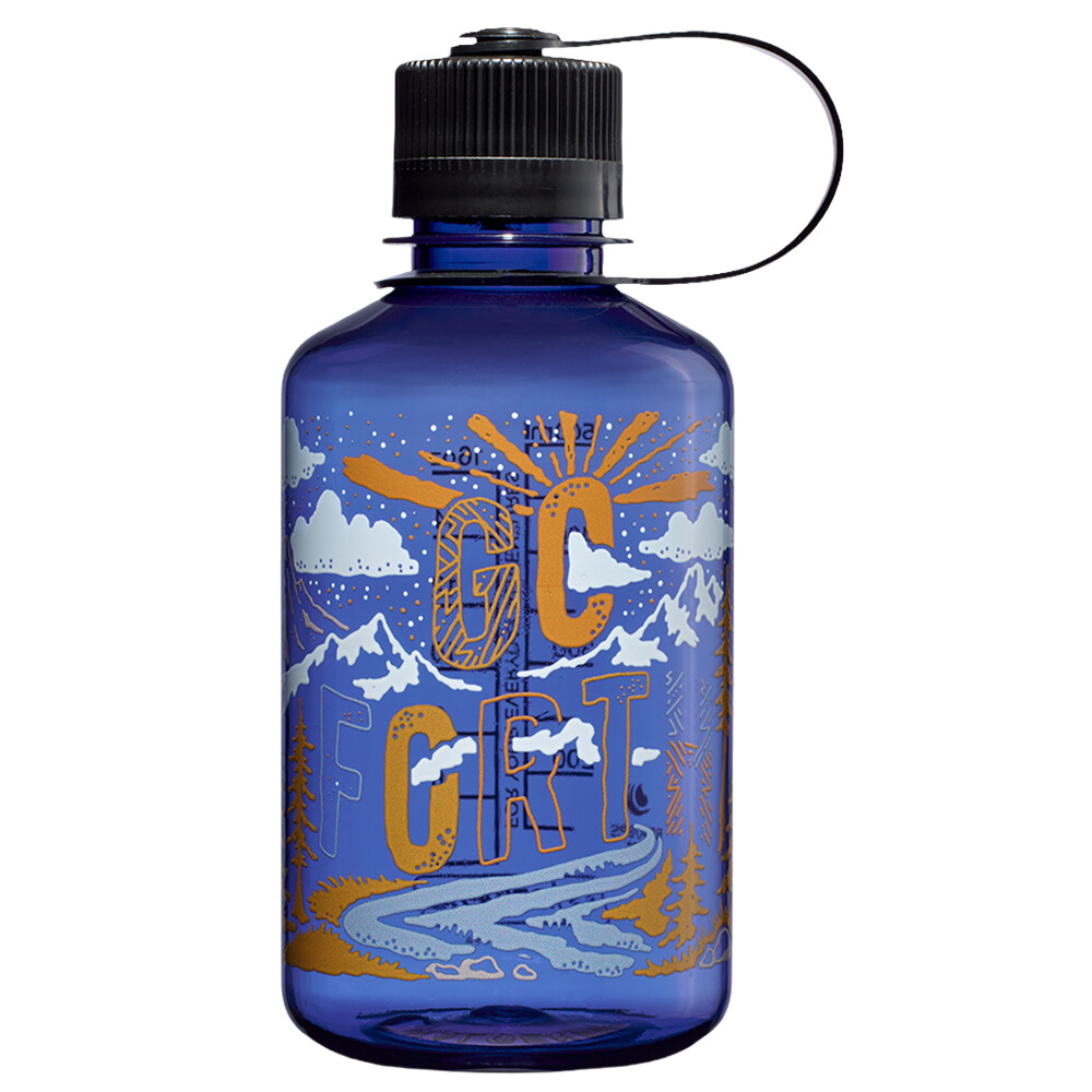 Litrová lahev Nalgene, která je vyrobena z 50% recyklovaného plastu. Šroubovací úzávěr je přichycen k lahvi, nehrozí tak jeho ztráta. Rysky na lahvi umožňují sledování pitného režimu a zároveň mixování nápojů.