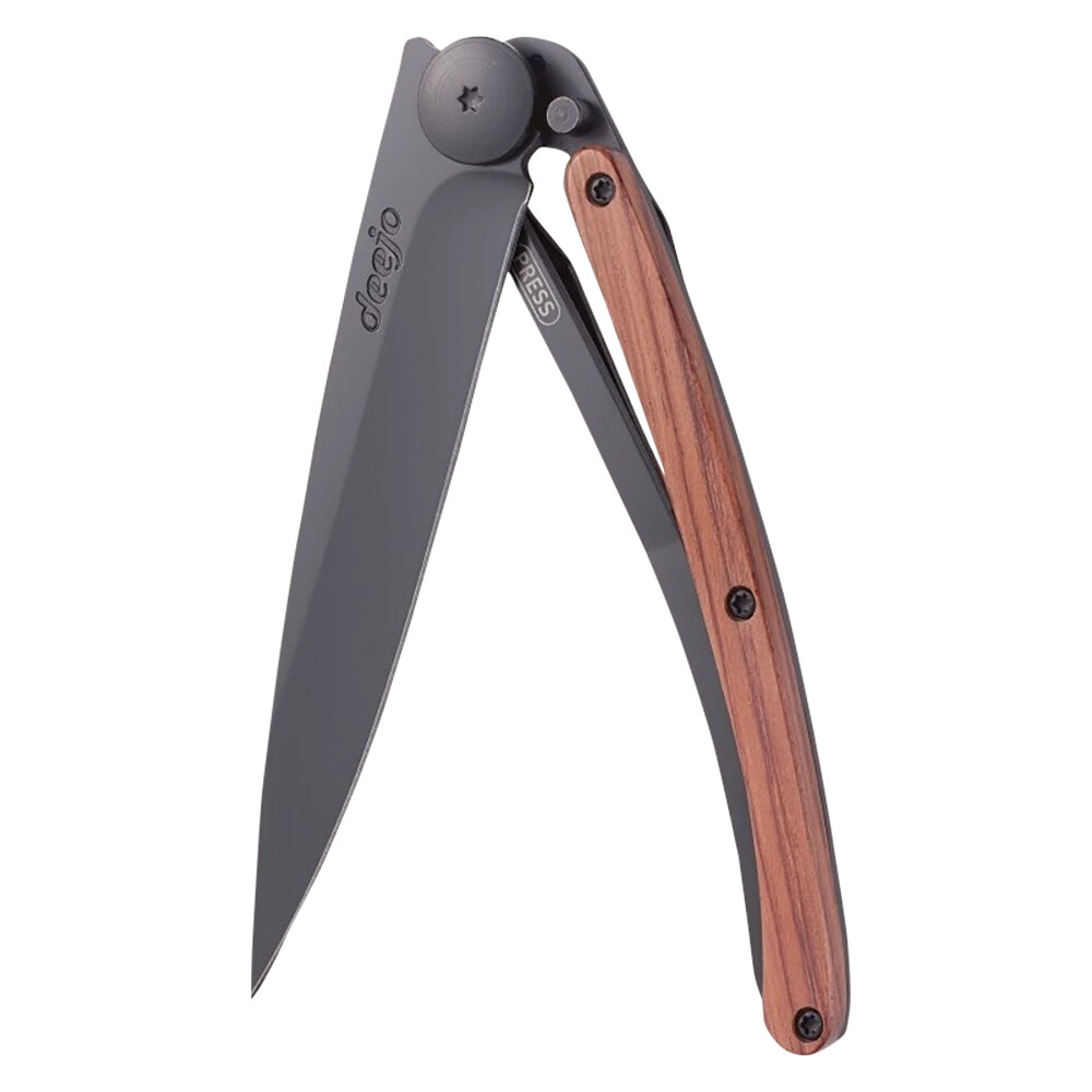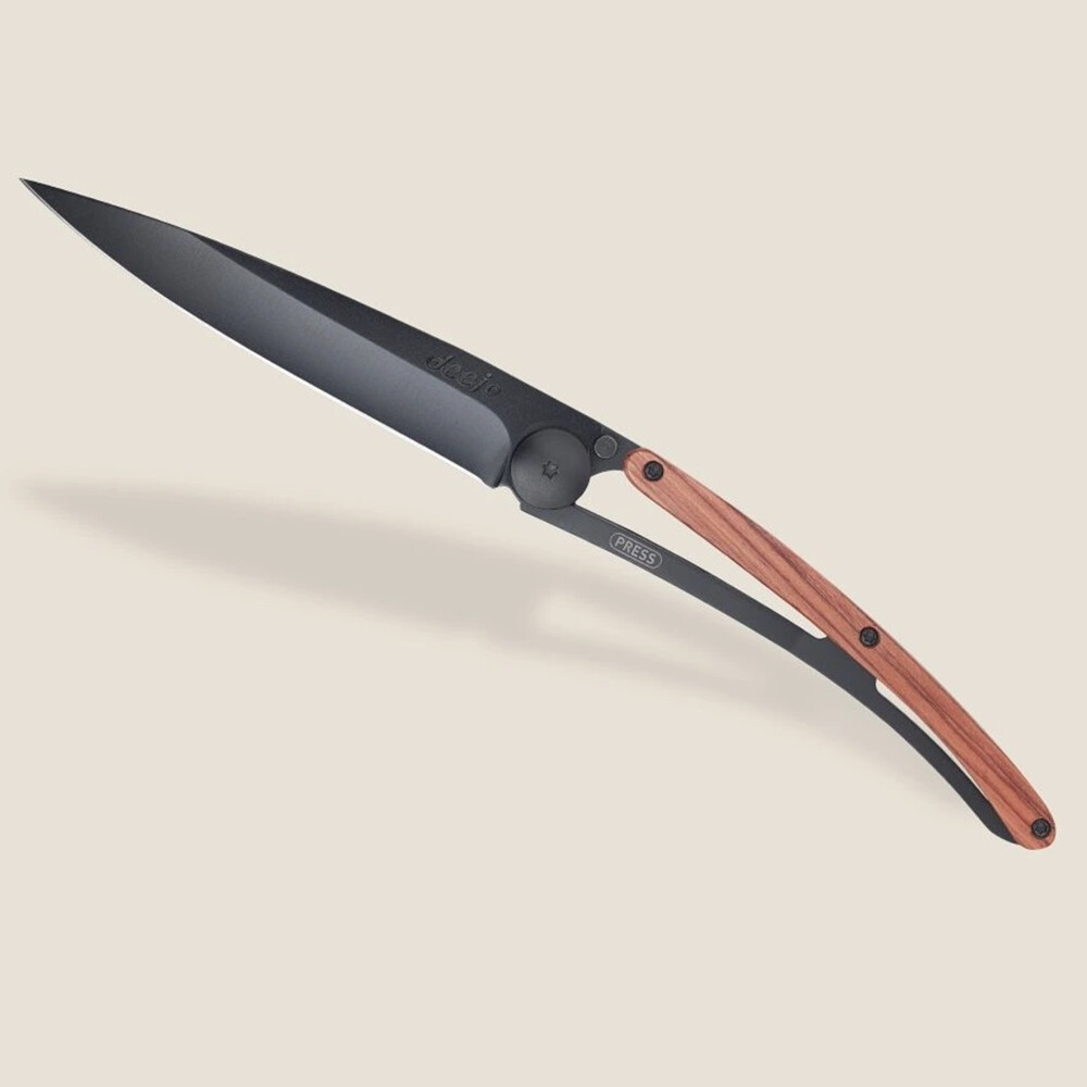 Značka Deejo vznikla z touhy oživit potěšení z vlastnictví kapesního nože. Originální, nezaměnitelný design povyšuje nůž na osobní doplněk nebo vyjímečný dárek. Navíc vždy z ušlechtilých materiálů, s bezpečnostní pojistkou a sponou na opasek. Střenka z exotického dřeva coralwood vyniká svým elegantním načervenalým odstínem. Dřevo z exotického stromu původem z Indie, je přirozeně žluté barvy, ale získává svůj červený nádech působením světla.