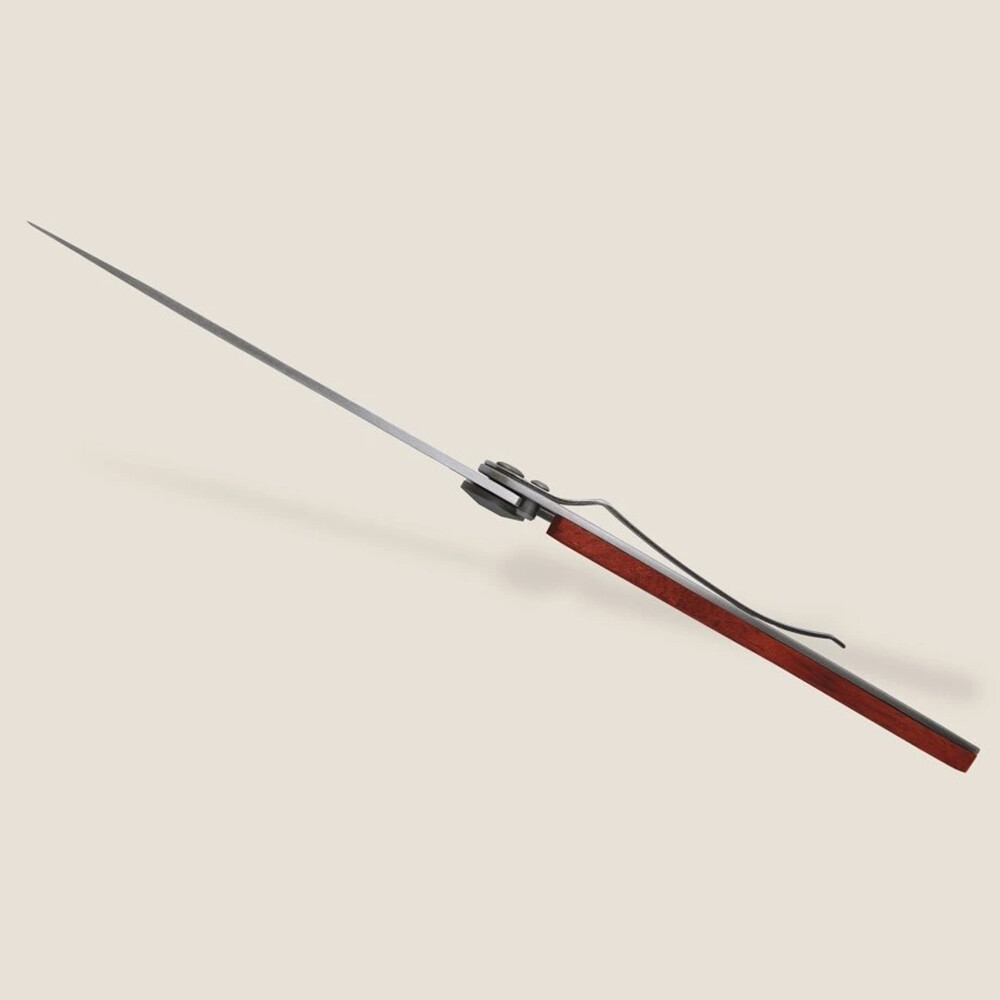 Stylový a vyjímečně lehký kapesní nůž. Má čepel z nerezové oceli se vzorem souhvězdí panny a střenku z olivového dřeva. Samozřejmostí je bezpečnostní pojistka a spona na opasek. Délka čepele 9.5 cm.