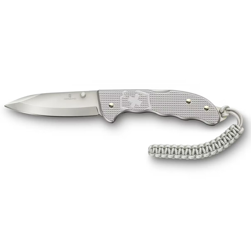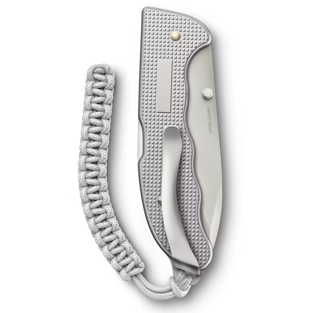 Elegantní zavírací nůž od značky Victorinox, to je model Evoke Alox. Čepel je vyrobena z vysoce kvalitní nerezové oceli a střenka z hliníku. Ta je v provedení Alox, kdy v průběhu anodického procesu dochází k nánosu ochranné vrstvy, která střenku chrání proti poškození a korozi. Nůž je opatřen paracordovým přívěškem a lze ho otvírat jednou rukou. Pomocí kovové spony ho snadno připevníte za kapsu kalhot nebo můžete využít oko na zavěšení.