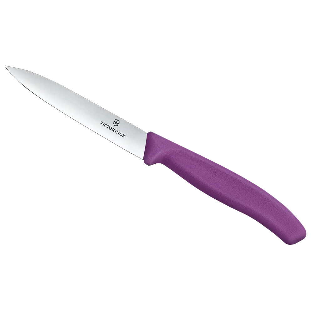 Nůž Swiss Classic Paring značky Victorinox má profesionální ostrou čepel z nerezové oceli s rovným ostřím a špičatou špičkou, která je ideální pro krájení nebo loupání zeleniny i ovoce. Jeho lehká ergonomická rukojeť je navržena tak, aby poskytovala optimální pohodlí a kontrolu.