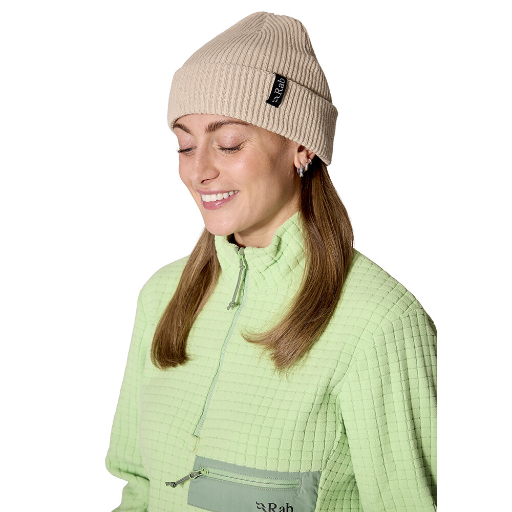 Stylová čepice od značky Rab skvěle doplní vaši zimní bundu. Moderní žebrovaný úplet s ohrnovacím lemem zajistí dostatečné teplo a pohodlí při všech aktivitách. Ať už s ní vyrazíte do města, na hory nebo na bouldering v chladném počasí. Je vyrobená ze 100% recyklované příze, která časem neztrácí tvar a čepice se nevytahá.