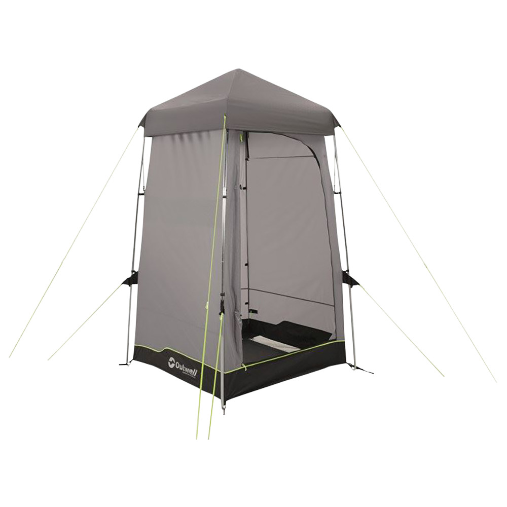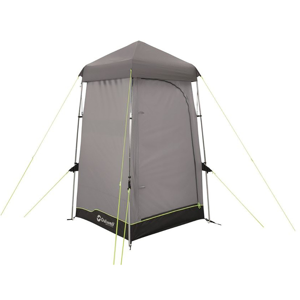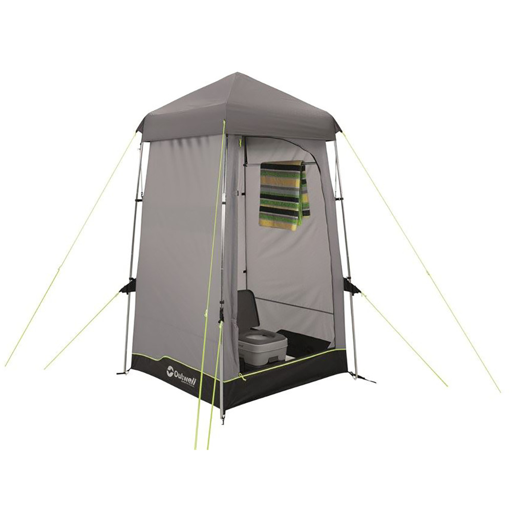 Toaletní stan značky Outwell je speciálně určen pro umístění chemické toalety nebo kempingové sprchy. Pro sprchový vak je zde předpřipravené místo pro zavěšení, aby během dne došlo k ohřátí vody slunečními paprsky. Stan je dále vybaven vstupem pro hadici na vodu, věšákem na ručníky, kapsami pro toaletní potřeby a poutkem pro zavěšení lucerny.