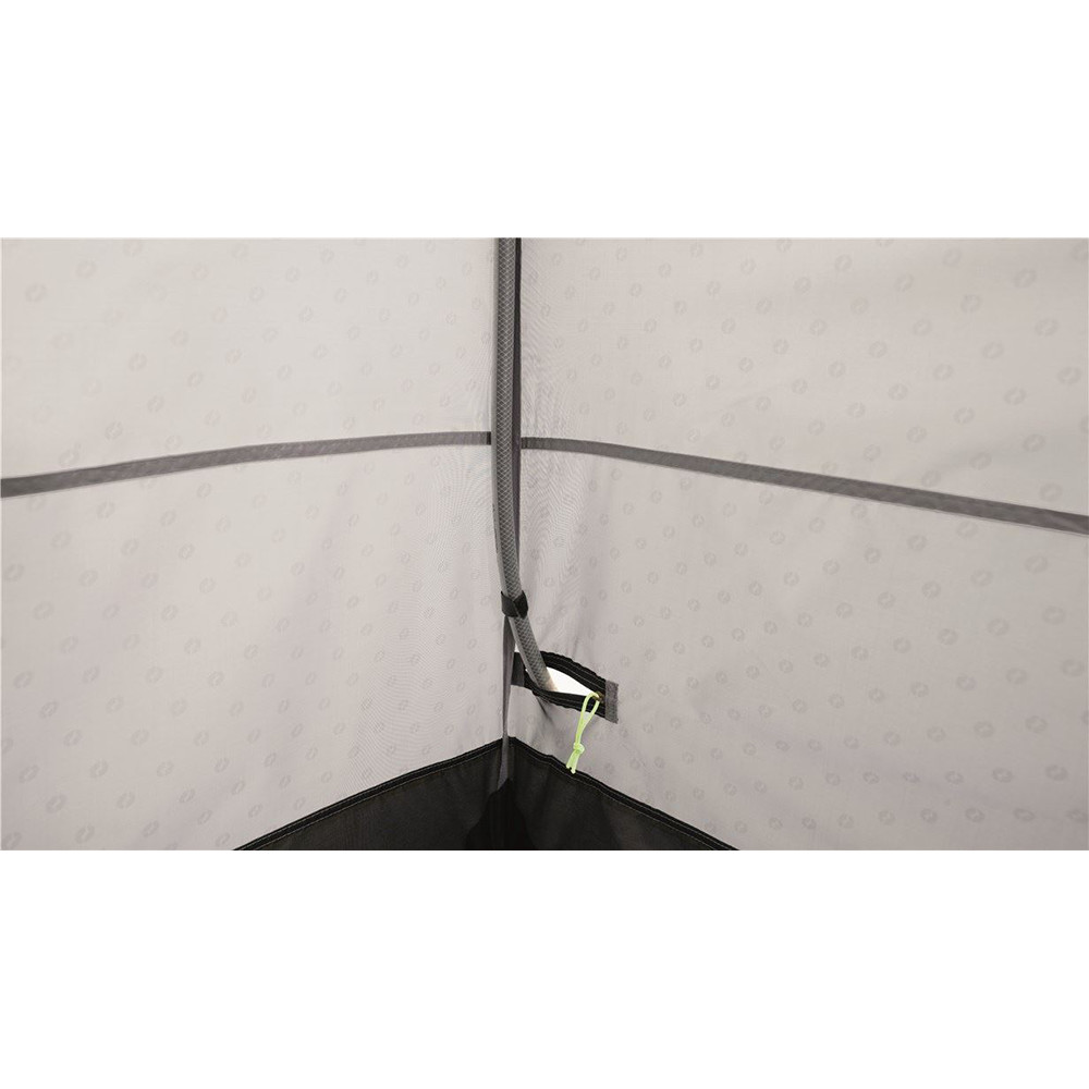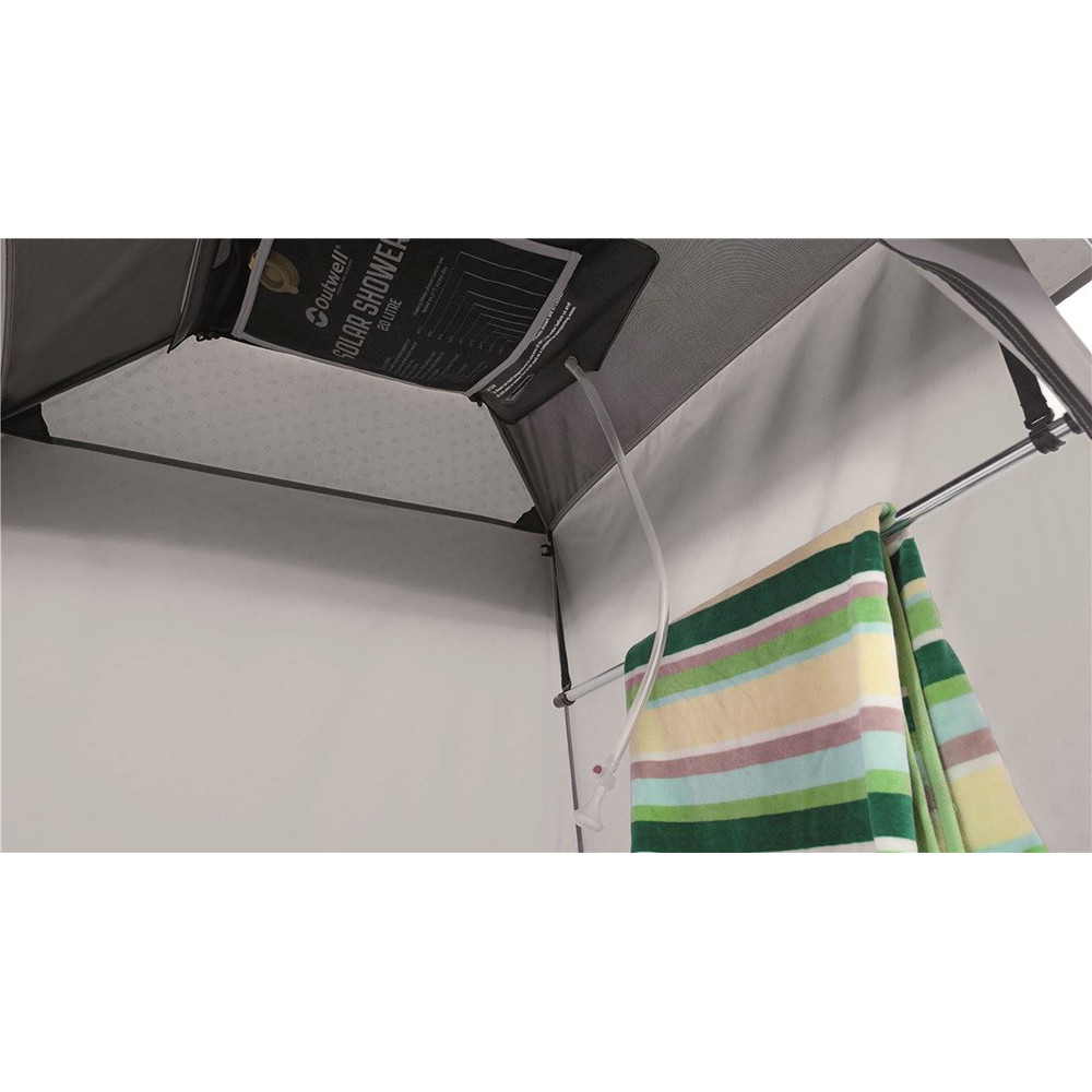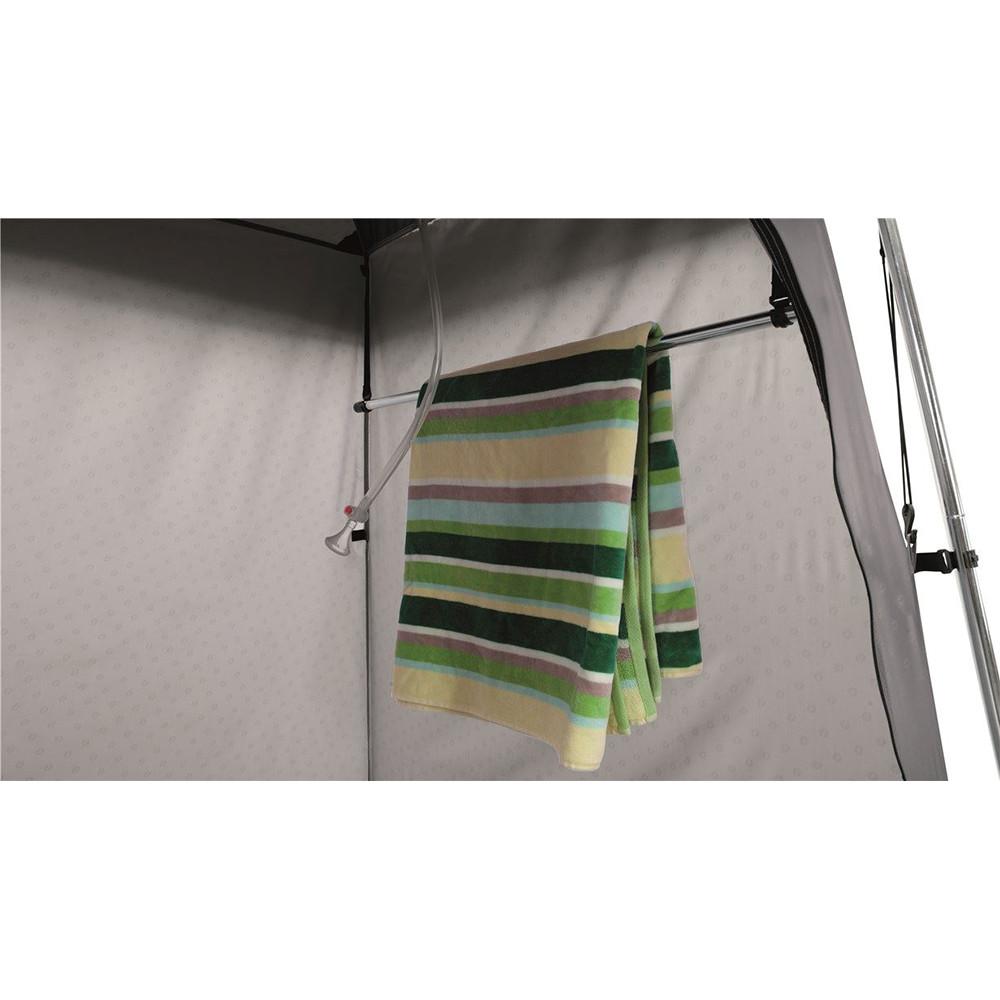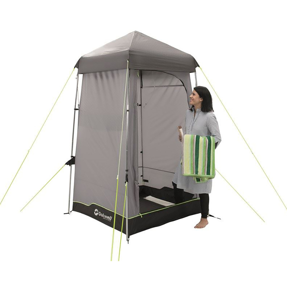 Toaletní stan značky Outwell je speciálně určen pro umístění chemické toalety nebo kempingové sprchy. Pro sprchový vak je zde předpřipravené místo pro zavěšení, aby během dne došlo k ohřátí vody slunečními paprsky. Stan je dále vybaven vstupem pro hadici na vodu, věšákem na ručníky, kapsami pro toaletní potřeby a poutkem pro zavěšení lucerny.