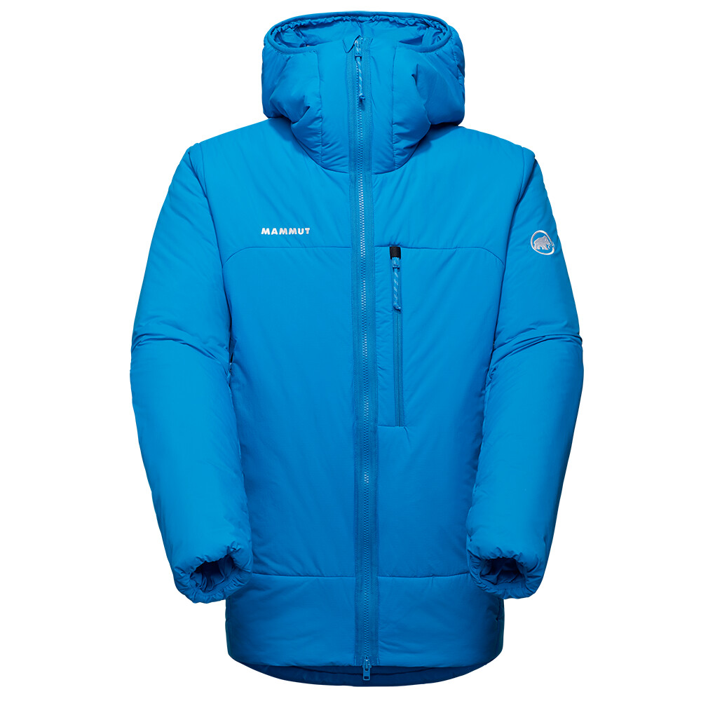 Bunda je vyrobena z dobře pratelného materiálu. Izolace Mammut Insulation vzniká recyklací lezeckých lan. Syntetická výplň hřeje i při navlhnutí. Nastavitelná kapuce je kompatibilní s helmou. Přední zip je doplněn o vnitřní klopu. Dvě zipové kapsy jsou skvěle přístupné i ve chvíli, kdy máte oblečený lezecký sedák nebo zapnutý bederní pás batohu. Vnitřní meshové kapsy uchovají potřebné drobnosti. Rukávy mají elastické manžety a spodní lem lze nastavit. Vnitřní nákrčník zabraňuje úniku tepla.