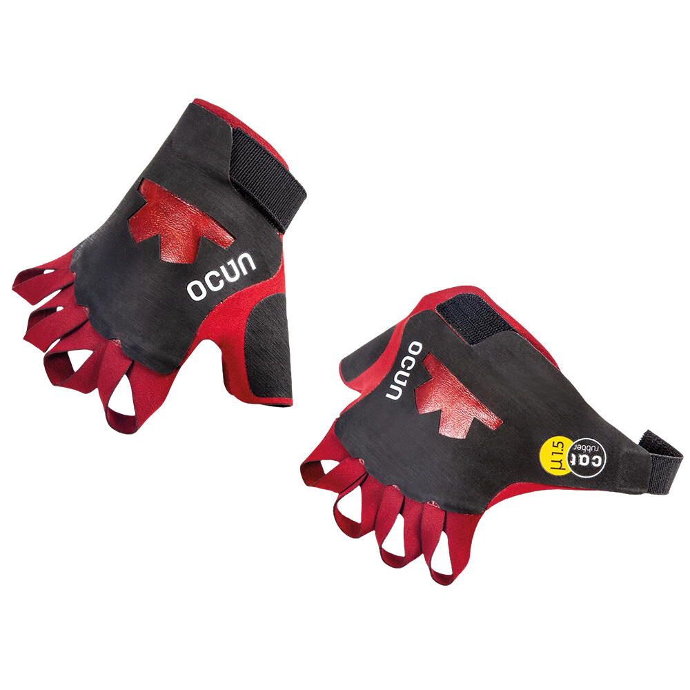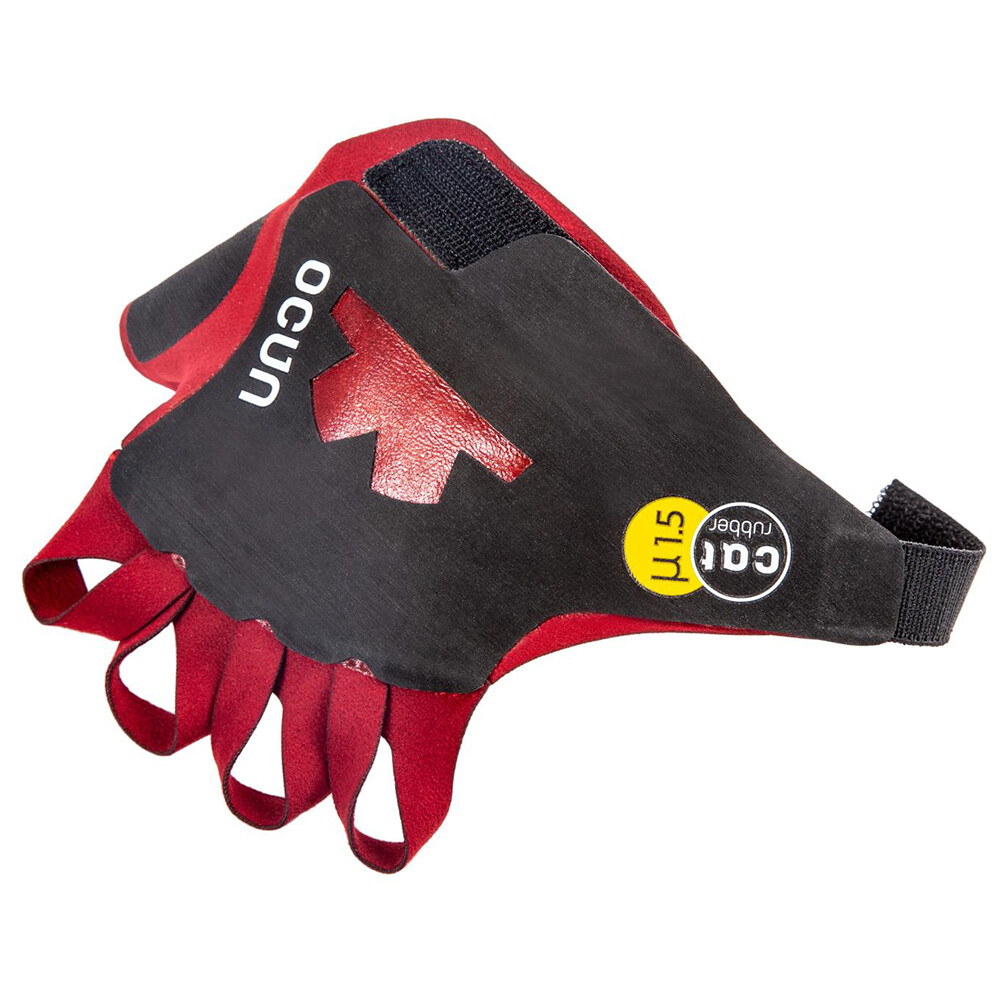 Lezecké rukavice od firmy Ocún, které jsou efektivní náhražkou za tejpy. Disponují odolnou a přilnavou gumou, se stahováním pomocí pásků na suchý zip.