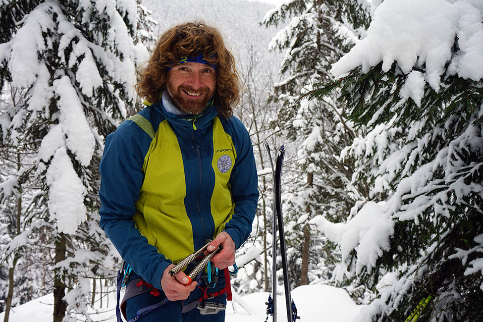Po cestě zpovídám kluky ohledně geneze jejich sportovní a outdoorové činnosti. Nejprve Pardubičáka Libora Kožíška: „Rodiče mě od mládí vedli ke sportu a k všestranosti. Tak jsem už jako dítě lyžoval, jezdil na vodu, hrál fotbal, hokej atd. Už na základce jsem si na lyžích poprvé zlomil nohu. Pak to pokračovalo přes univerzální sporty a na univerzitě, v nějakejch dvaceti jsem začal tíhnout k lezení a vstoupil do pardubickýho horolezeckýho oddílu a začal jsem s lezením v horách. Paralelně s tím přišly skialpy a horský kolo. Ještě před skialpama jsme v polovině devadesátejch let v Tatrách tahali na zádech obyčejný sjezdovky a prošlapávali si to pěšky. Pak přišly první jednoduchý skialpy se starým vázáním Silvreta 404.