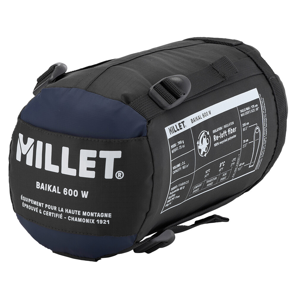 Spací pytel Baikal 600 W od značky Millet má náplň z umělého vlákna a je ideální pro použití v teplejších měsících. Jeho velkou předností je nízká hmotnost a dobrá sbalitelnost, takže se vám vejde i do menšího turistického batohu. Izolace ReLoft z recyklovaného polyesteru velmi dobře zvládá použití ve vlhku a dešti, a snadno se udržuje. Spacák Millet Baikal vám zajistí pohodlný spánek na letním treku, při cykloturistice, vodní turistice nebo během spaní v kempu i na horské chatě.