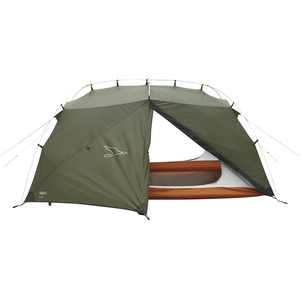 Tropiko stanu je vyrobeno z materiálu WeatherGuard 3000 s PU zátěrem a podlepenými švy, který poskytuje vodní sloupec 3000 mm. Podlážka je z PU potaženého polyesteru s vodním sloupcem 5000 mm, což zvyšuje odolnost proti vlhkosti od země. Uspořádání dveří umožňuje variabilní otevření jednoho nebo obou vstupů podle potřeby, a elastické úchyty lze použít i k vytvoření malé stříšky přes řídítka kola. Rago 3 má dva vstupy pro pohodlný přístup a lepší větrání a nabízí chytré detaily, jako jsou vnitřní šňůra na sušení drobného prádla, úložné kapsy či poutko na lampu, které zvyšují komfort i během delšího pobytu venku. V balení najdete i voděodolný transportní obal s přezkami pro snadné upevnění na kolo nebo batoh.
