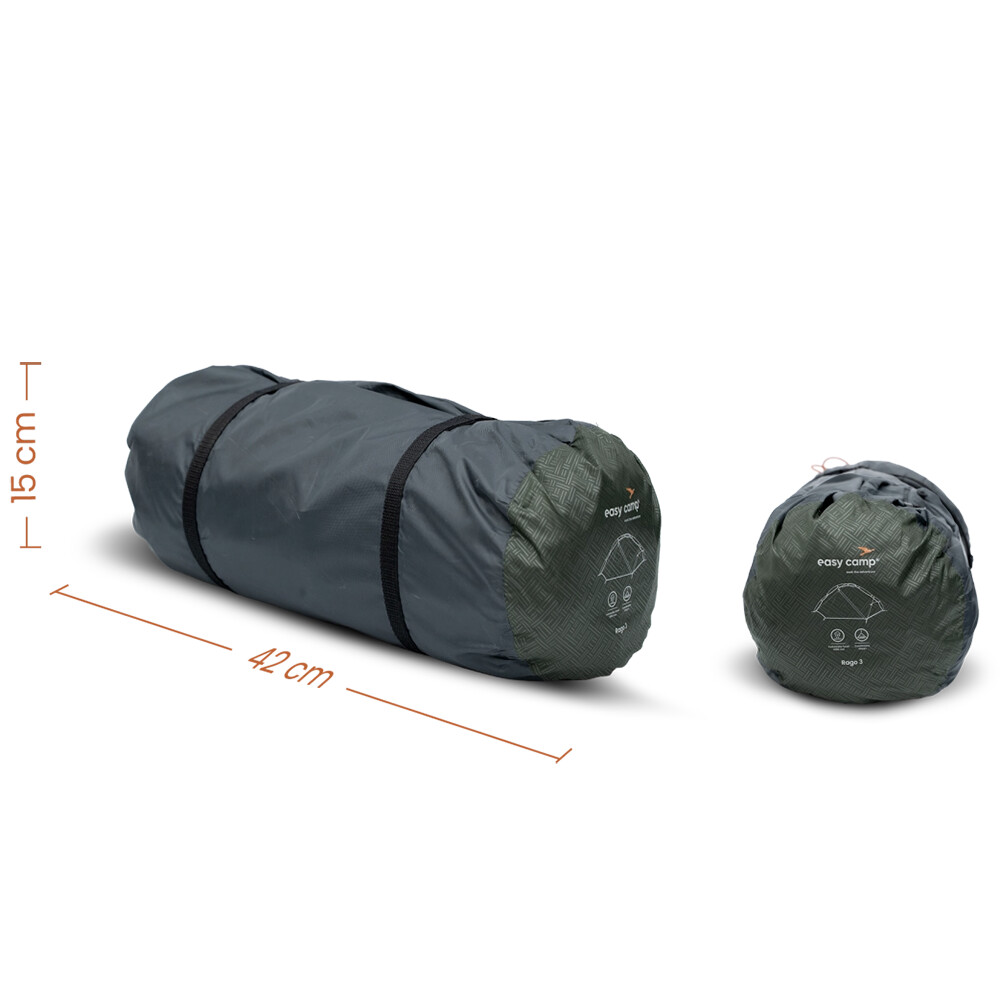Lehký stan značky Easy Camp Rago 3 je ideální volbou pro outdoorové dobrodružství pěšky nebo na kole. Díky plně samonosné konstrukci se snadno a rychle staví bez komplikovaného napínání, a clip-on systém tyčí zajišťuje pevnou a stabilní strukturu během celého pobytu v přírodě. Nízká hmotnost a kompaktní transportní rozměr oceníte všude tam, kde záleží na minimu hmotnosti a snadném balení.