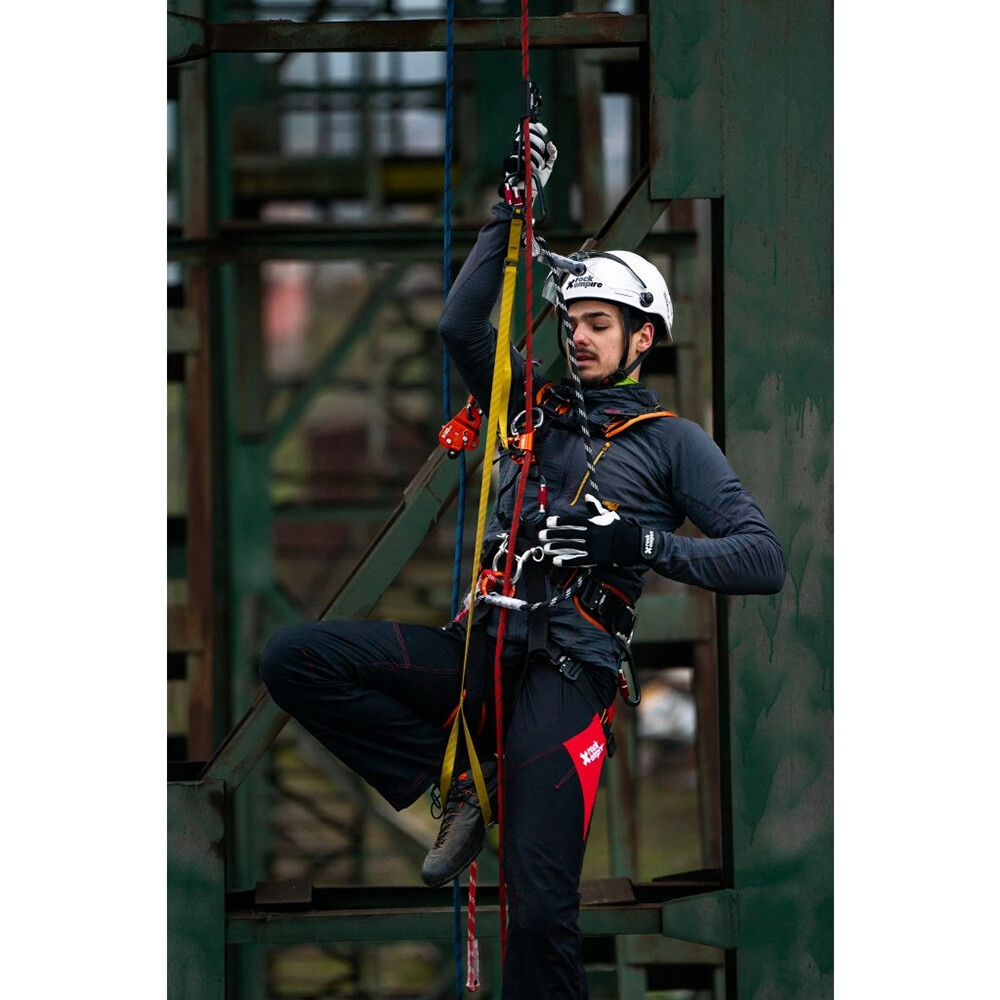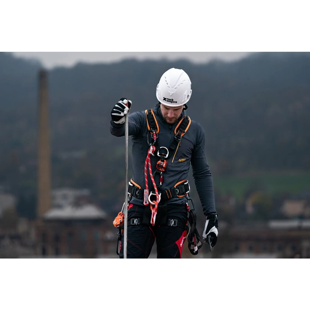 Intuitivně ovladatelný polohovací prostředek Stand značky Rock Empire, který umožňuje rychlé nastavení délky pro zaujmutí pracovní pozice. Materiál smyčky dokáže pohltit rázovou sílu pří pádovém zatížení (při pádovém faktoru menším než 1). K připojení k úvazku je potřeba použít pracovní spojku (EN 361) nejlépe typu majlonka nebo spojovací kroužek Rock Empire Connect Ring.