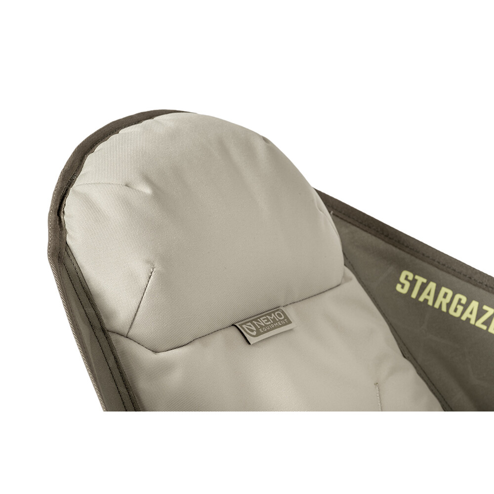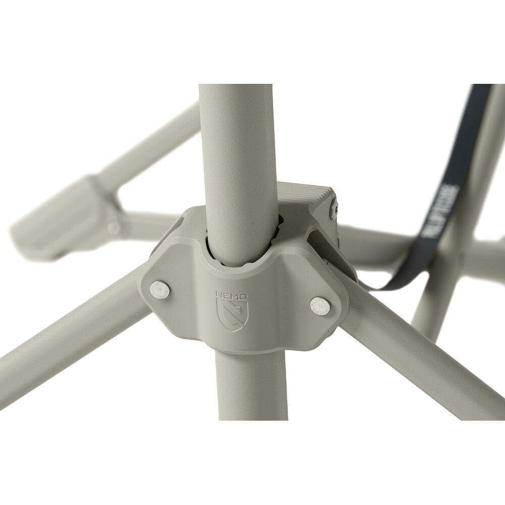 Křeslo Stargaze Evo-X od značky Nemo vám poskytne pohodlné posezení a navíc také příjemné pohoupání. Rám je vyroben z odolného leteckého hliníku a vše je připraveno pro velice jednoduché sestavení, v jednom kroku. Nepotřebujete nářadí a není nutné složitě nastavovat jednotlivé díly. Zároveň si křeslo Stargaze Evo-X zachovává svou celkovou polohovatelnost (nastavení sklonu zádové opěrky, možnost opření loktů a výškově stavitelnou opěrku hlavy). Po stranách najdete kapsy na odložení nápoje, mobilního telefonu nebo čelovky. Díky šesti opěrným bodům je vysoce stabilní na různém druhu povrchu (písek, kamenitý terén, měkká půda). Křeslo je certifikovaným Bluesign® produktem. Užijte si hladký houpavý pohyb, jako v houpací síti.