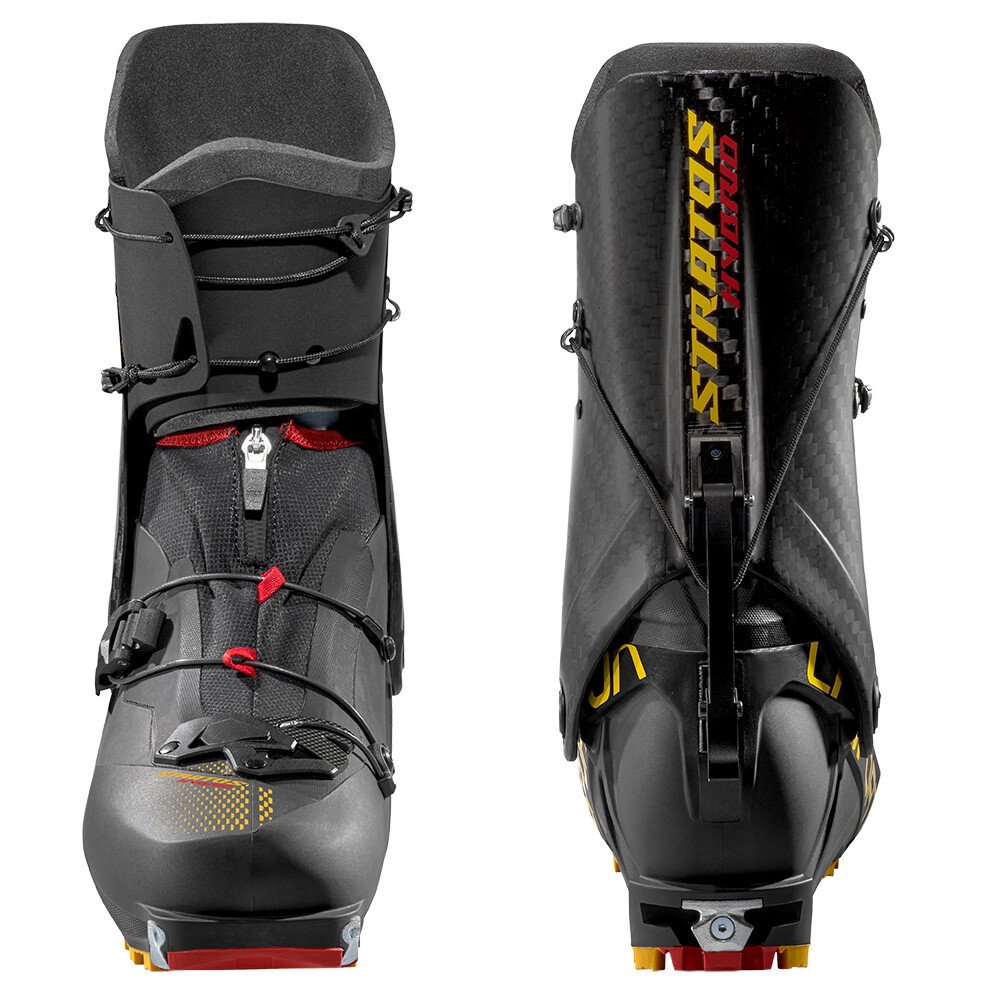 Stratos Hybrid italské značky La Sportiva jsou skialpové boty, které svou konstrukcí spojují potřeby zkušených skialpinistů pro náročné výstupy a zároveň umožňují závodní použití na rekreační nebo začátečnické úrovni. Skelet je vyroben z kombinace karbonu a Grilamidu Bio based. Systém zapínání a aretace komínu v režimech ski/walk je převzat ze závodního modelu Stratos VI.