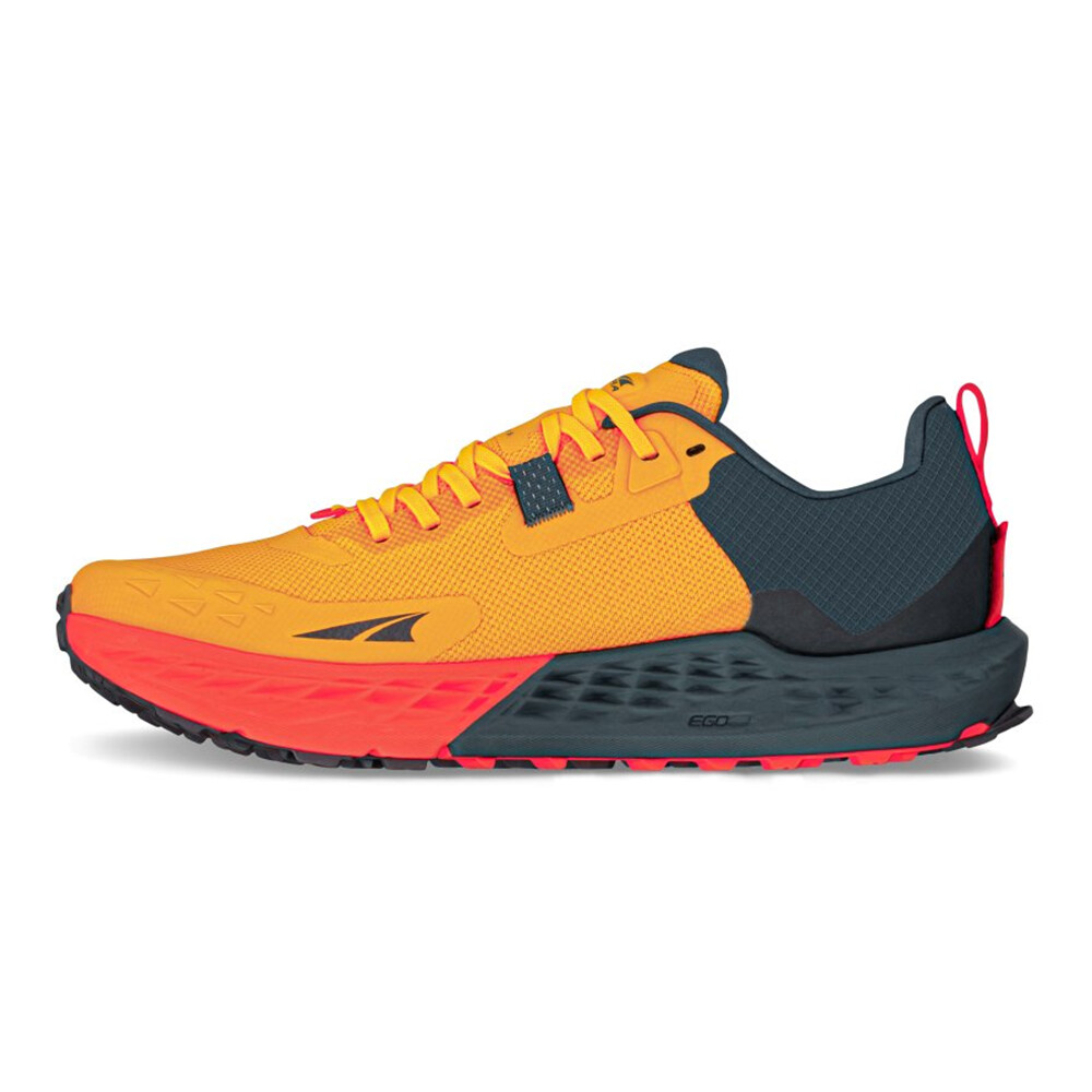 Konstrukce boty Timp 5 Men byla podřízena jedinému cíli. Získat trailovou obuv, která snese opravdu intenzivní nasazení. Její ergonomický střih dokonale kopíruje tvar chodidla a umožňuje přirozené rozprostření prstů. Prodyšný svrchní materiál udržuje příjemné vnitřní klima za parných letních dnů a zesílená pěnová mezipodešev Altra EGO™ MAX výrazně snižuje zátěž, s níž se musí vypořádat váš kloubní aparát.