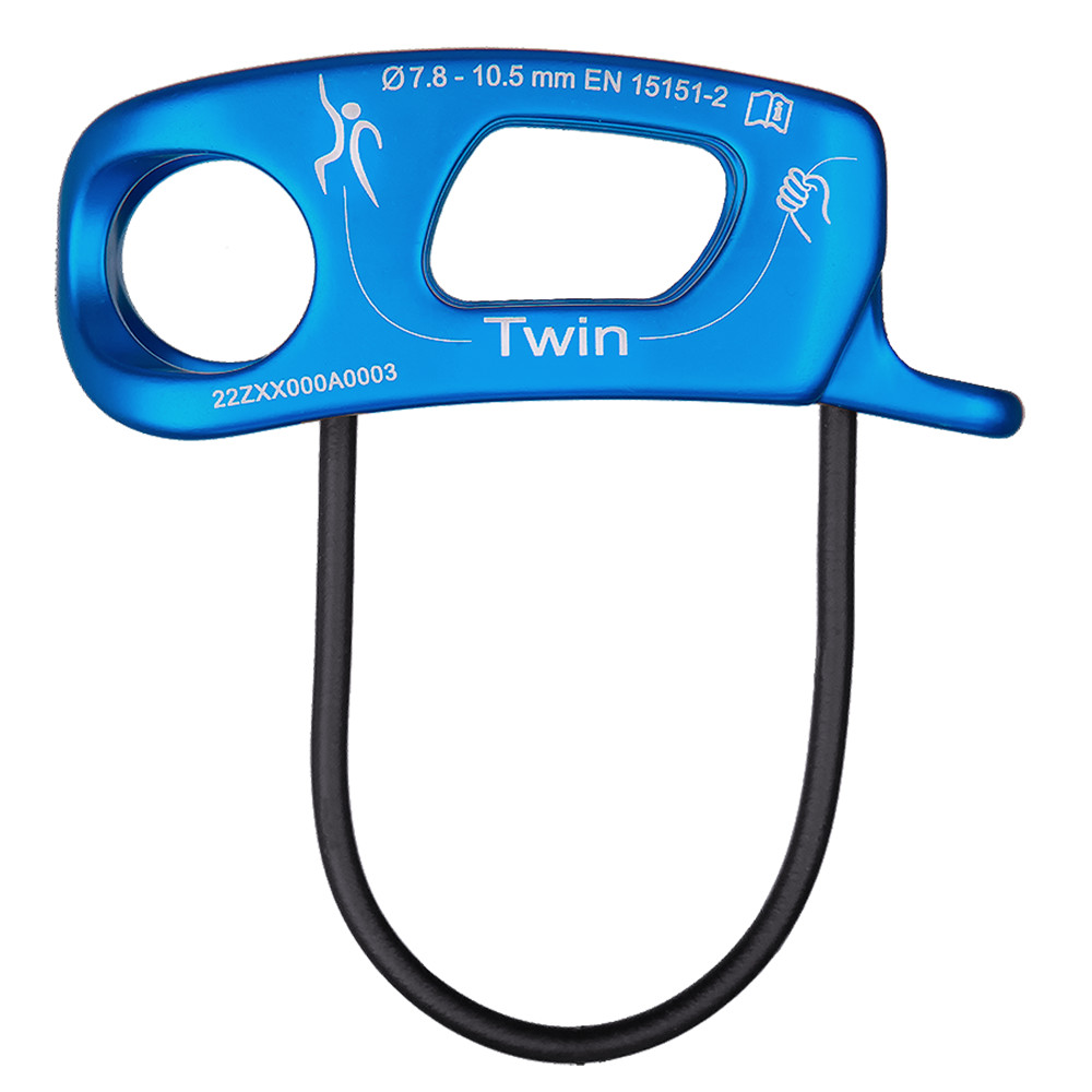 Twin od Rock Empire je osvědčená slaňovací a jistící pomůcka s inovativní patentovanou konstrukcí v závěsné části, která umožňuje lepší flexibilitu při instalaci do různých druhů fixních bodů. Je ideální nejen pro jištění prvolezce nebo pro dobírání jednoho či dvou druholezců, ale také slouží ke slaňování.