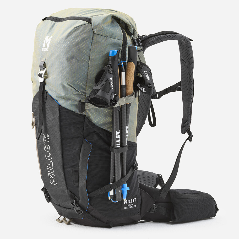 Batoh UBIC 35 od značky Millet je ideální volbou pro 1-3 denní horské túry. Díky chytrému systému popruhů, z nichž dva jsou odnímatelné, si snadno připevníte vybavení na každé roční období – stan, trekové hole, lyže, sněžnice nebo snowboard. Promyšlené uspořádání kapes umožňuje přehlednou organizaci věcí, zatímco minimalistický design s rolovacím uzávěrem a bočním zipem snižuje hmotnost batohu. Praktické kufrové otevírání vám navíc zajistí rychlý přístup ke všemu, co potřebujete. Ergonomické ramenní popruhy a nastavitelné popruhy pro rozložení zátěže zaručují maximální pohodlí i při náročném výšlapu. V případě deště rychle nasadíte integrovanou pláštěnku, zatímco drobnosti, jako je telefon nebo svačina, budete mít vždy po ruce v kapse na zip na bederním pásu.