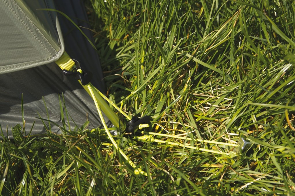 - Reflexní prvky na poutkách a zipech usnadňují a zrychlují stavbu stanu za tmy.