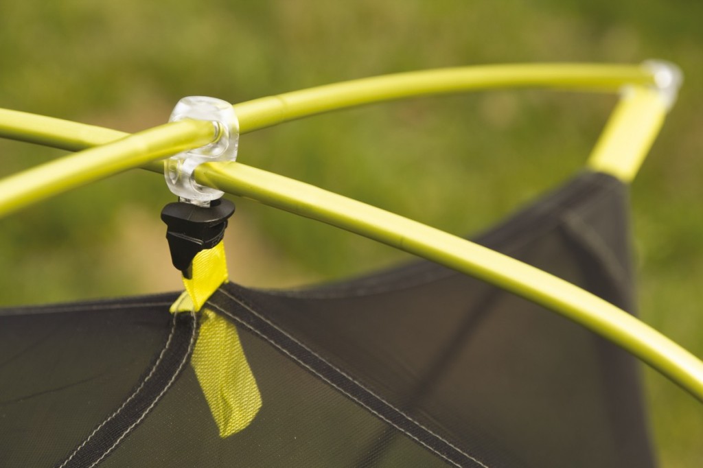 - Superlehké spony a popruhy odlehčují stan a snižují jeho hmotnost na minimum.