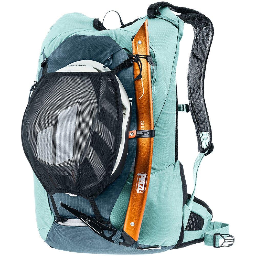 Batoh pro horolezce a skialpinisty. Má horní roll-top zavírání a boční vstupy na zip. Možnost nesení lana, cepínů, hůlek, lyží a součástí je držák na helmu. Bederní pás s poutkem na materiál.