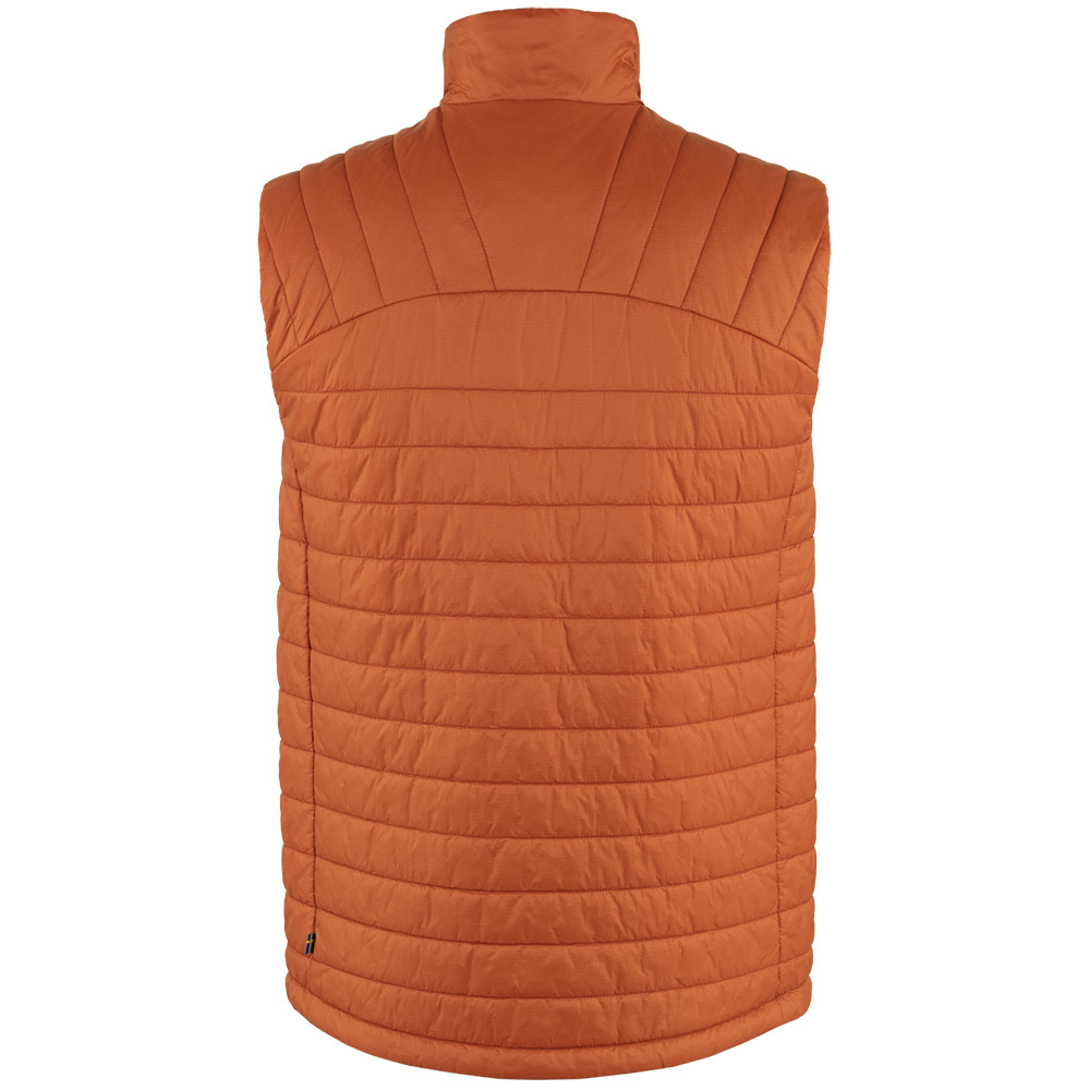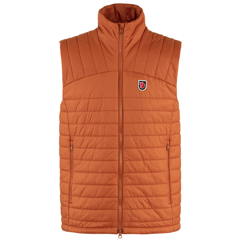 Vesta značky Fjällräven, která dodá extra teplo, vždy když je ho třeba. Dvě postranní zipové kapsy, elastické zakončení a kožené logo na levé straně vesty.